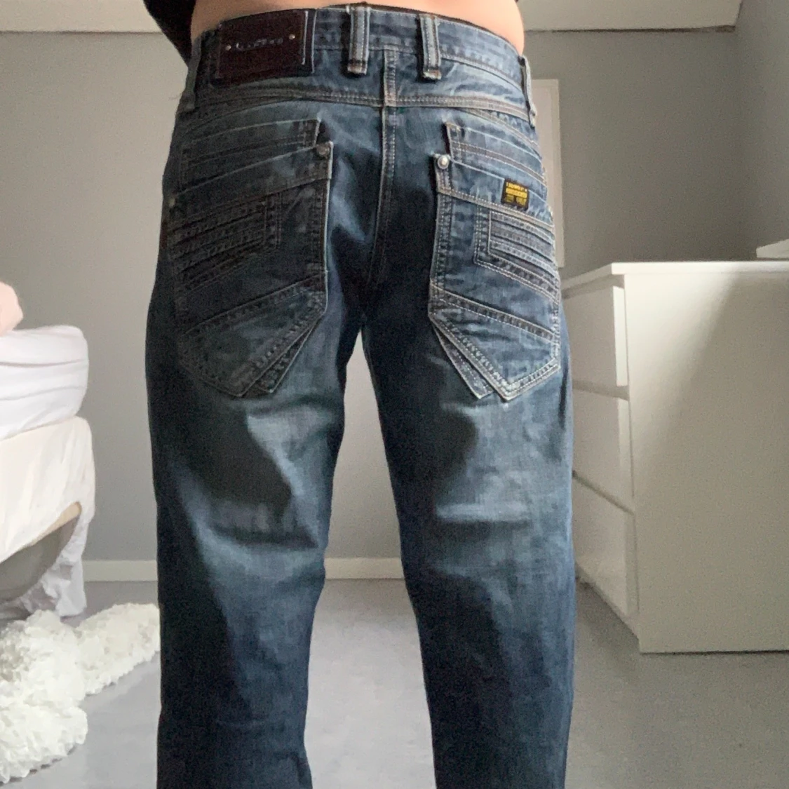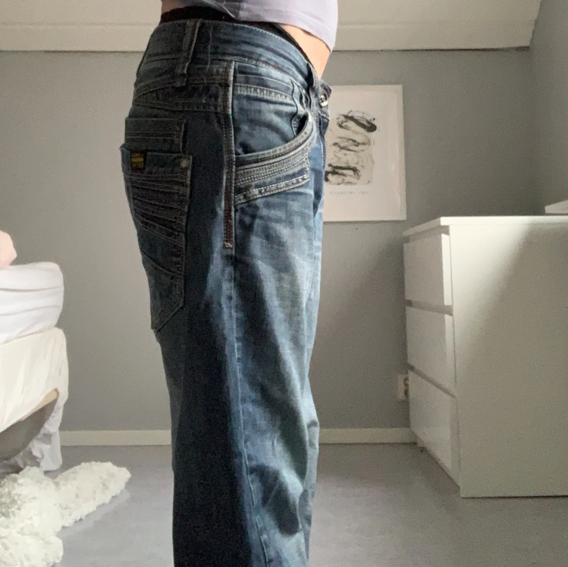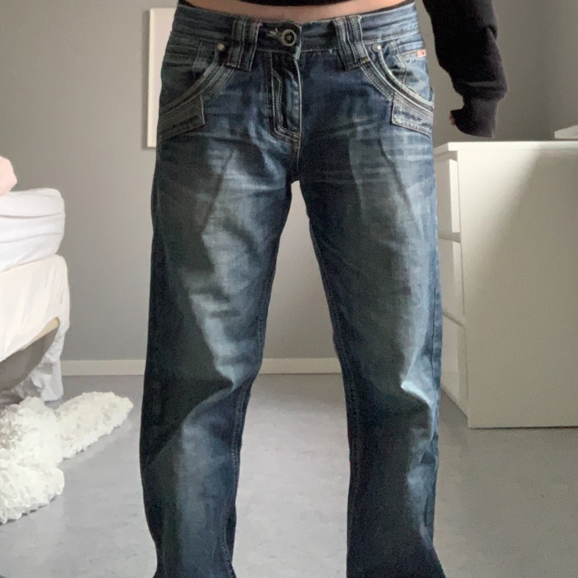 Ett par absoluta favoriter hos mig men Ă€r lite stora för mig sĂ„ kommer tyvĂ€rr inte till anvĂ€ndning. JĂ€ttefint skick förutom en söm som Ă€r lite sliten vid knappen (kan skicka bild!)đ Tar verkligen emot att sĂ€lja dessa, verkligen ursnygga och unika!