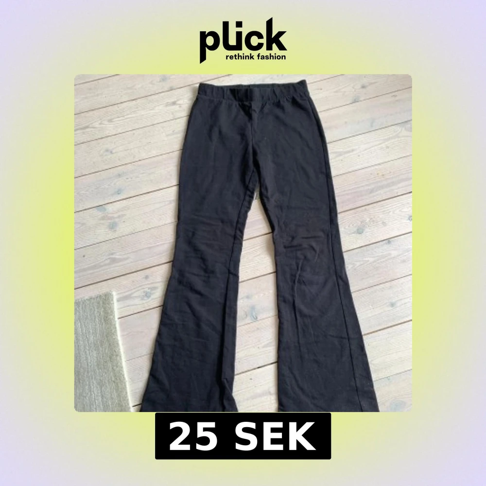 Svarta bootcut byxor från KappAhl i mjukt bomullsmaterial. Byxorna har elastisk midja och en klassisk utsvängd passform nertill. Perfekta för dig som gillar en enkel och stilren look med lite 90-talsvibbar.
