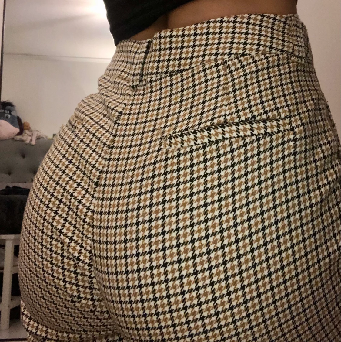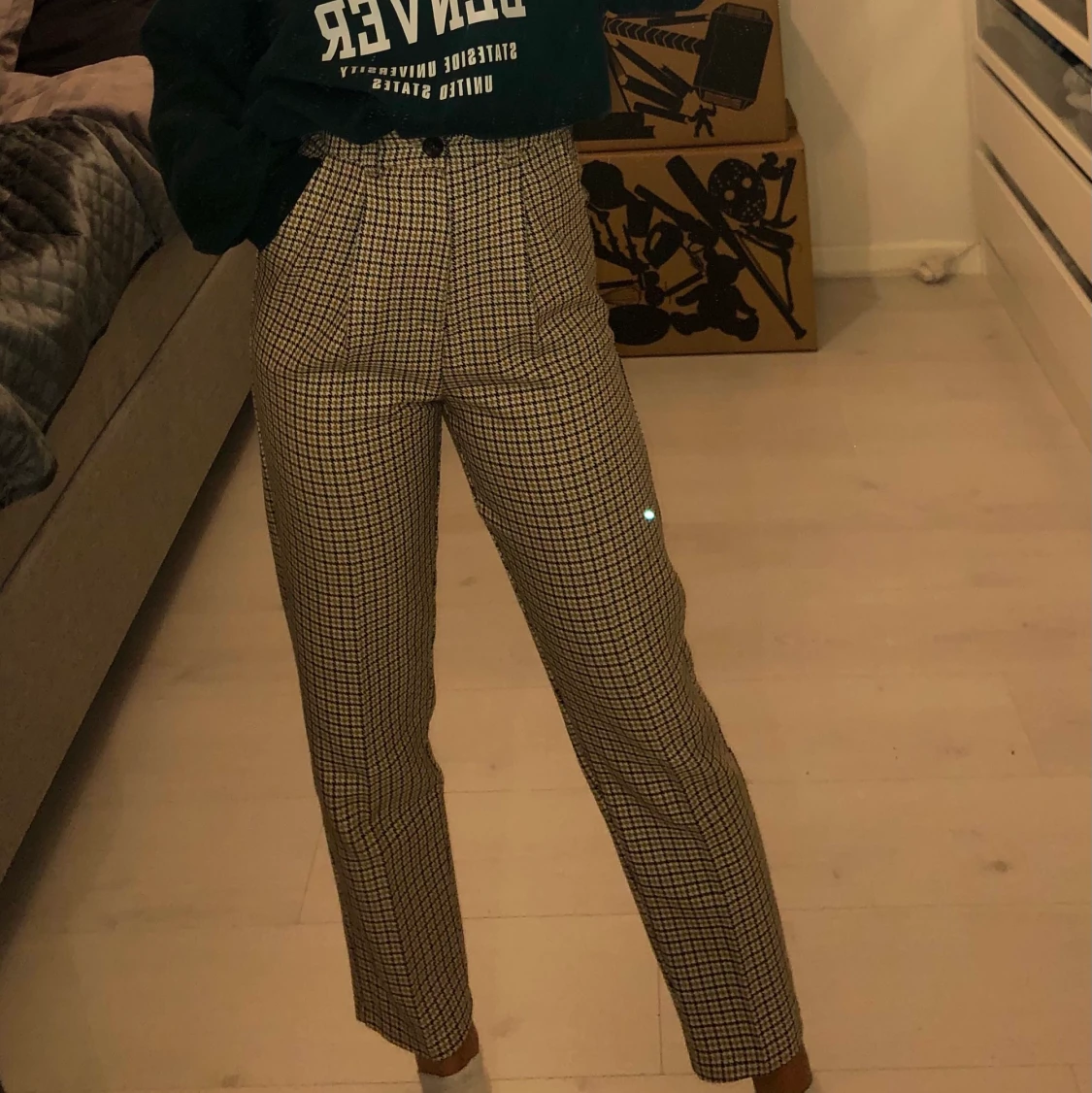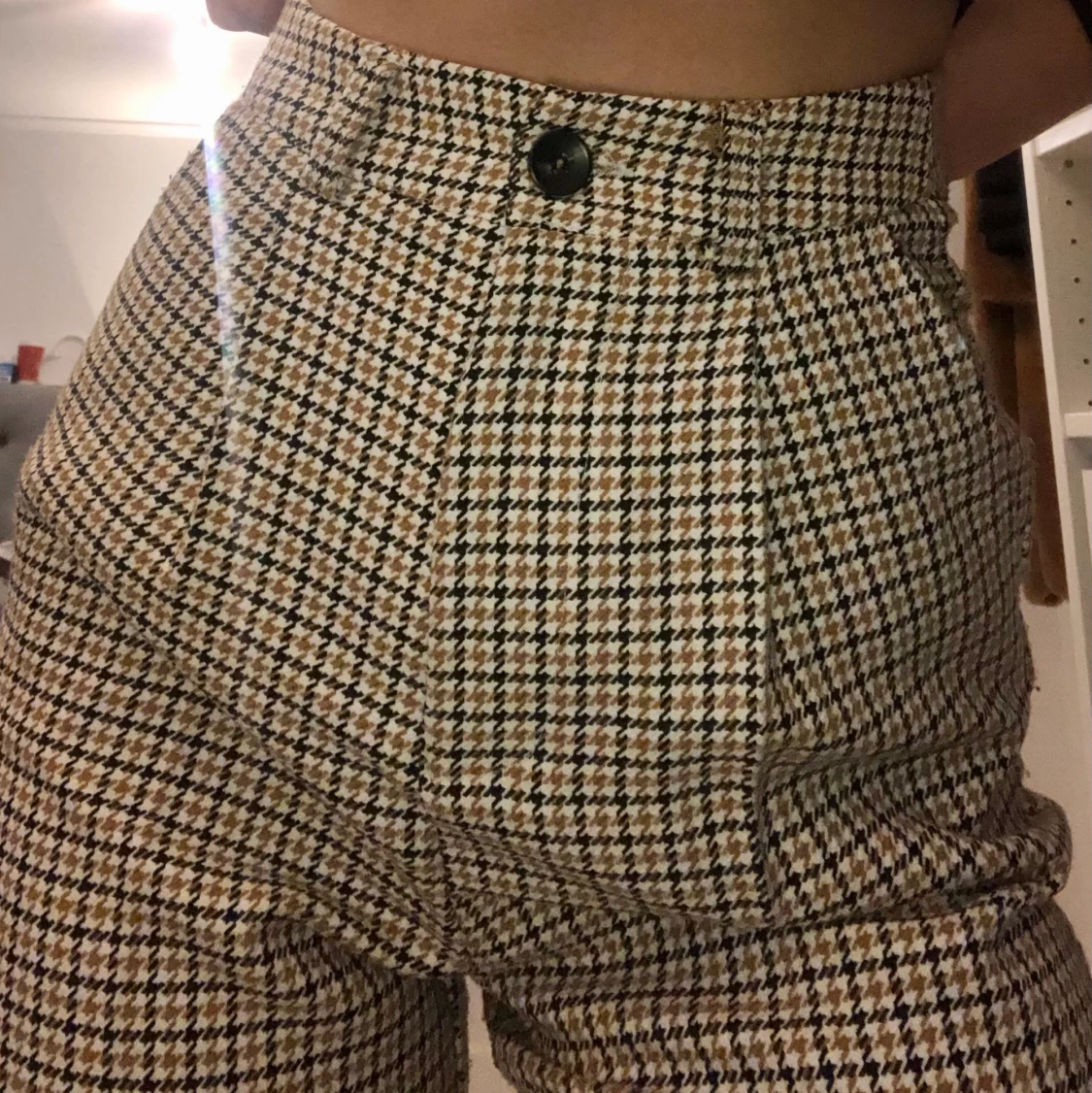 Säljer mina kostymbyxor! Supersnygga byxor med hundtandsmönster i ganska fint skick, de är lite noppriga men det går att lösa med nopprare. Jag är 160cm lång och byxorna kommer ner till mina vrister. Nypris: vet ej😬, köpare står för frakt! Skriv gärna om ni har frågor💕