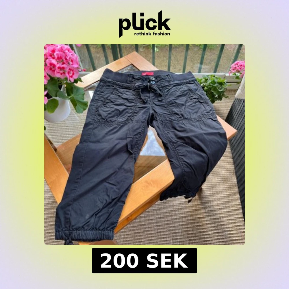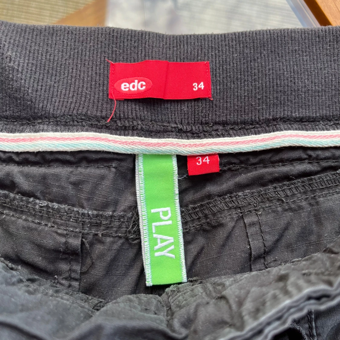 Svarta capribyxor från edc med resår och snörning i midjan. Byxorna har två fickorfram och bak. Mycket sköna byxor av bomull. Storlek 34.