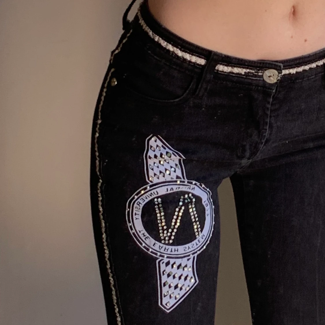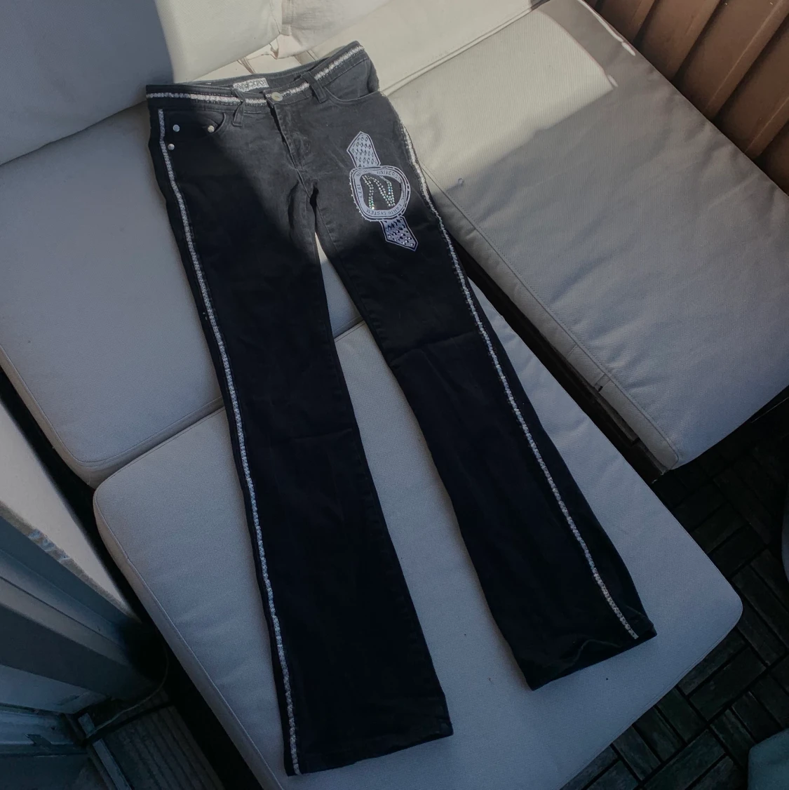 Svarta jeanse med detaljer längs sömmarna och ett strasstryck på vänster lår:) säljer pga för små:(