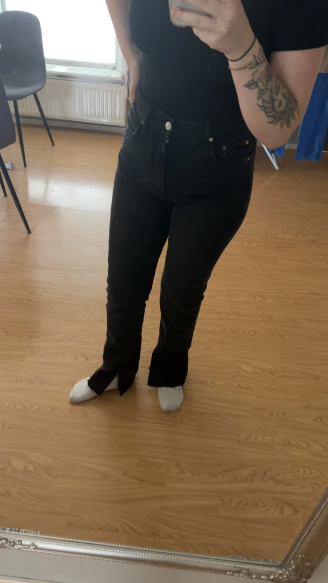 Super fina jeans från Gina med slits ner till, tyvärr förstora på mig men annars super fina, säljer eller om nån vill byta mot 36, detta e 38❤️