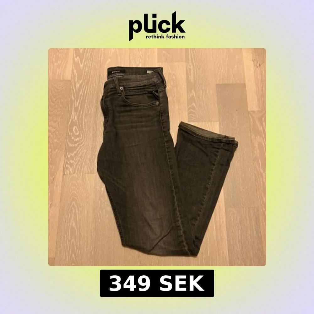 Snygga svarta stiliga Reaplay jeans, skick 7/10. Perfekt för en stilren look nu inför våren, va inte rädd för att ställa frågor vid minsta funderingar 💪👖🌟🌿