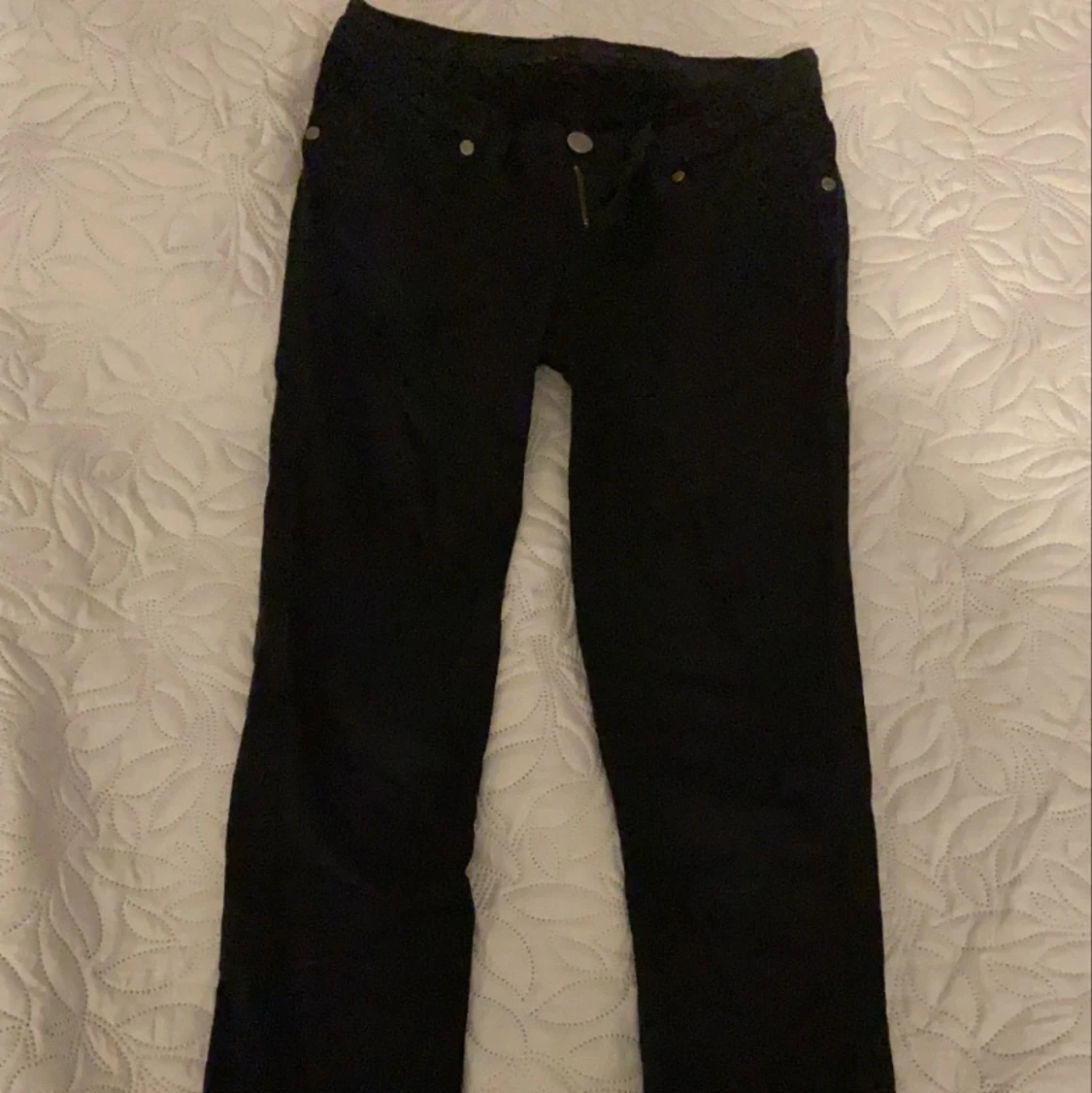 Säljer ett par vanliga svarta Dr Denim jeans i Strl S, lågmidjade. Kan mötas upp i Sthlm eller frakta❤️