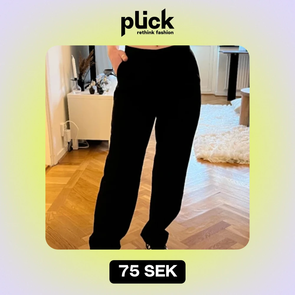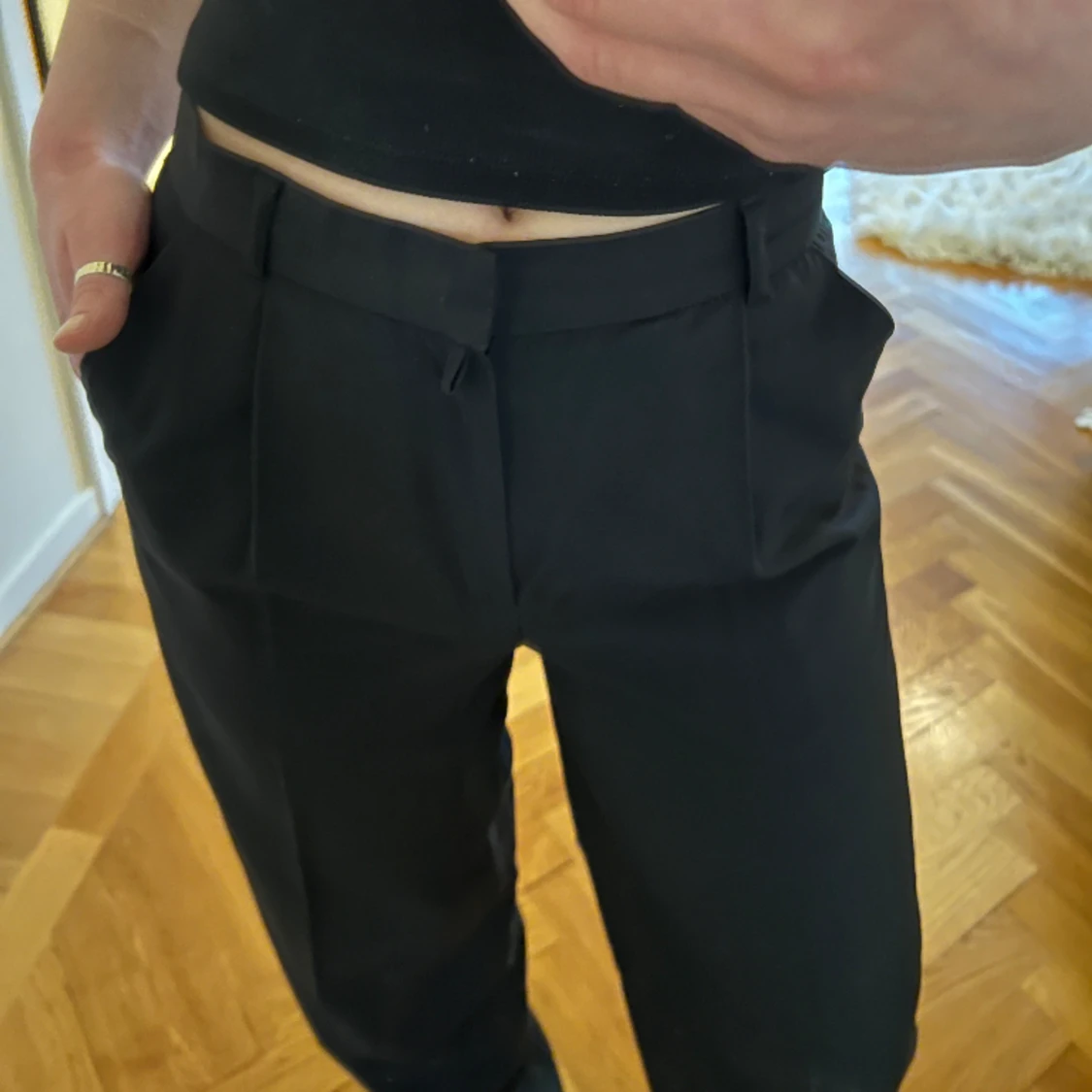 Svarta lågmidjade kostymbyxor, köpta second hand. Står ej storlek, men uppskattar till en XS. 75:- frakt.
