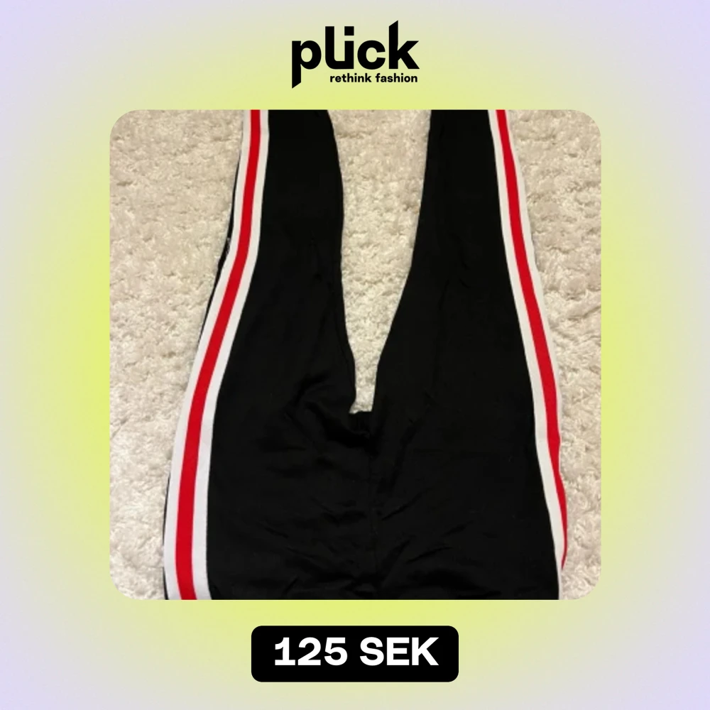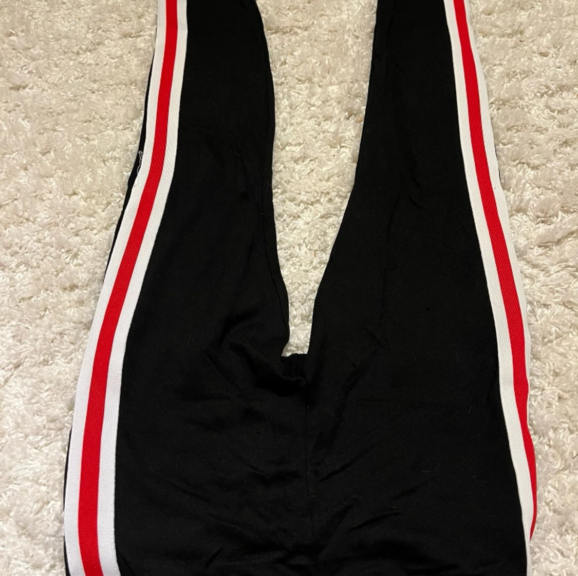 Ett par slim, svarta mjukis byxor med snygga rödvita ränder på sidorna! Använt fåtal gånger.