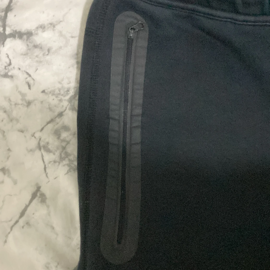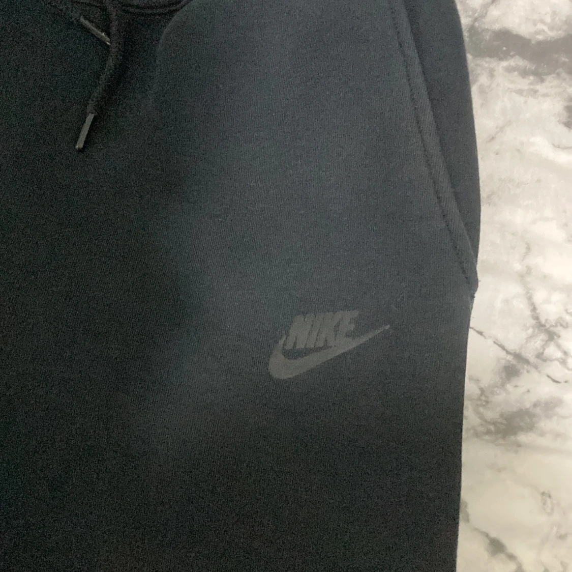 Svart Nike tech fleece, helt äkta. Byxorna är sjukt sköna och har en jättebra passform. OBS fläcken på bild 2 är på spegeln och inte på byxorna
