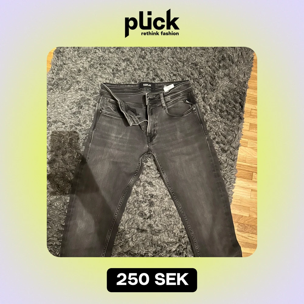 Säljer ett par snygga svarta jeans från Replay i mycket bra skick. De har en trendig passform och är perfekta för både vardag och fest. Jeansen har klassisk femficksdesign och en diskret Replay-logga på bakfickan. Perfekta för höst och vinter!