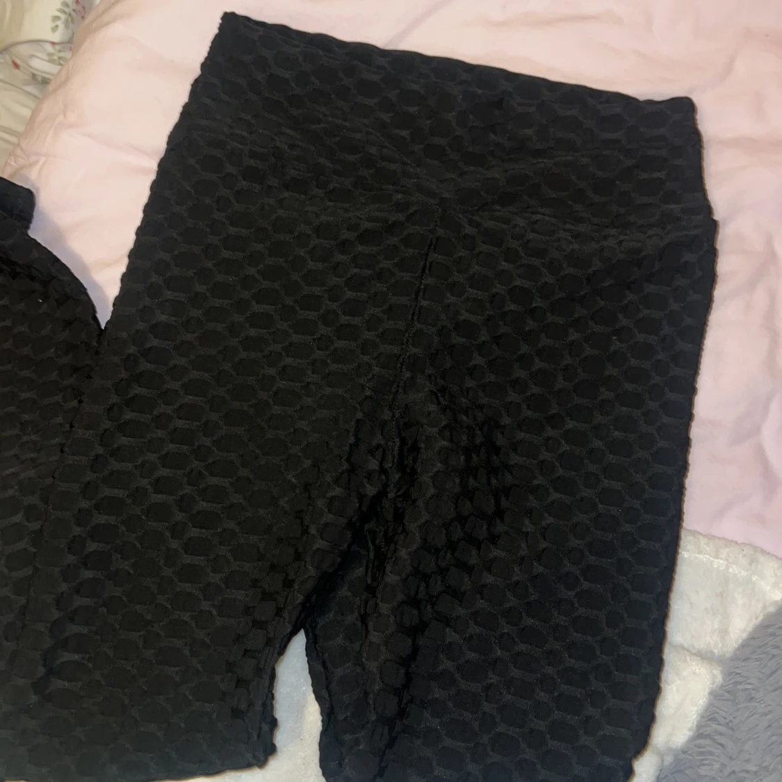 Jättefina gym tights. Färg svart. Orm liknande material. Ny skick. Aldrig använda. Köptes för 200. Säljer för 80kr. Skrynkliga vid rumpan. Vilket format en fin form bak till. Stretchigt material.