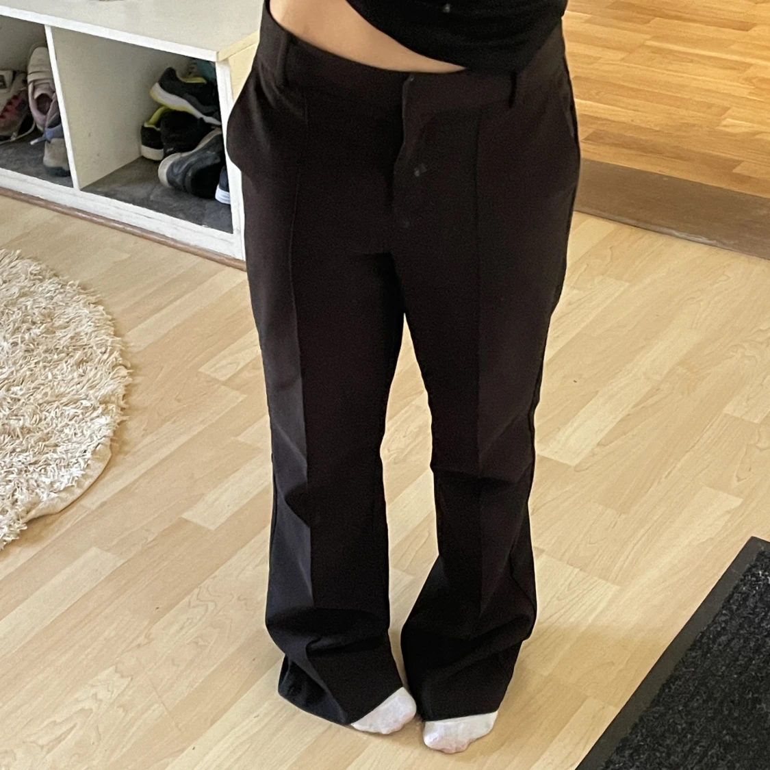 Svarta kostymbyxor från Vero Moda, köpa för drygt ett år sedan. Tyvärr sitter de inte som jag önskar och tänkte därför att de kunde få nytt hem hos någon annan :) För referens är jag 159 ;) Kom med prisförslag, billigt vid snabb affär