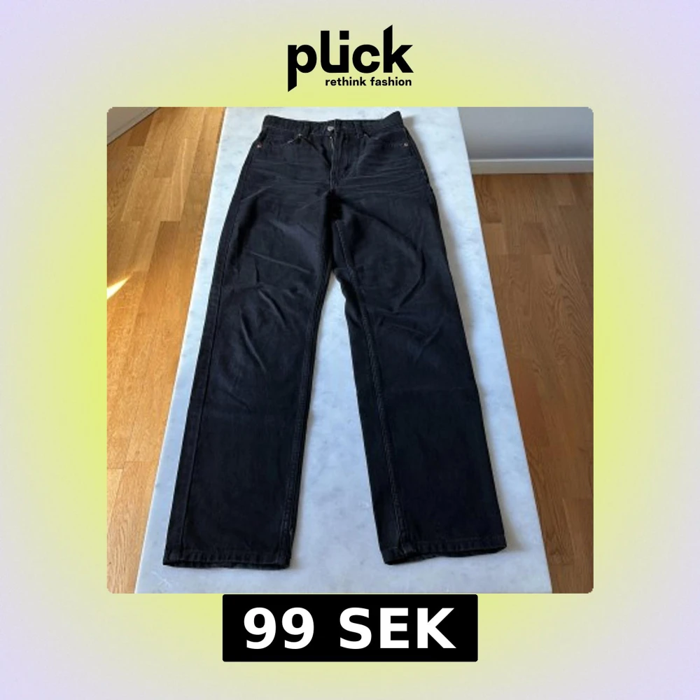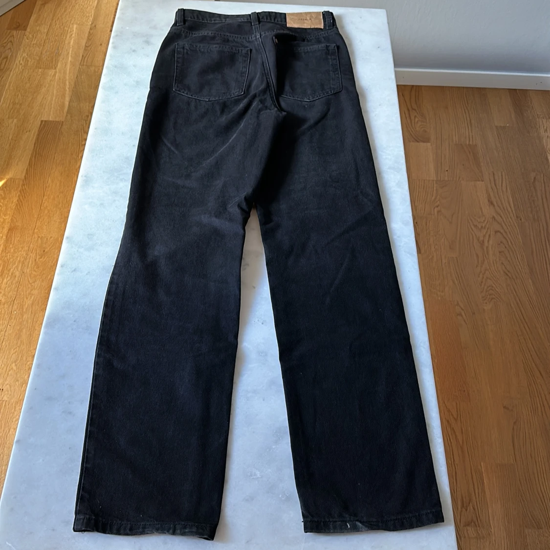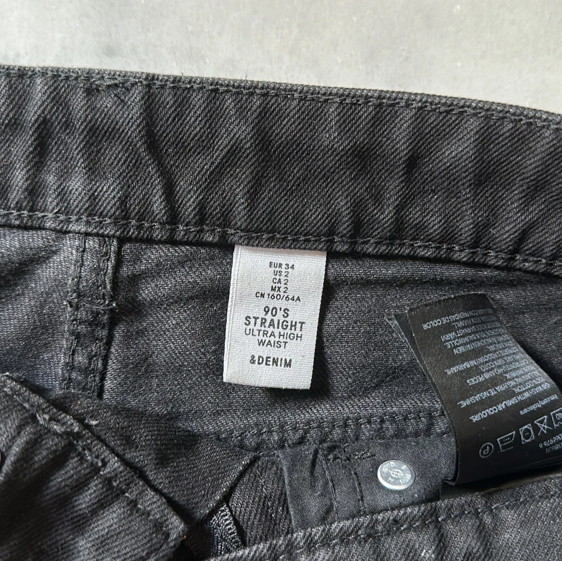 Säljer ett par svarta 90's straight jeans från Hm i storlek 34. Hög midja.
