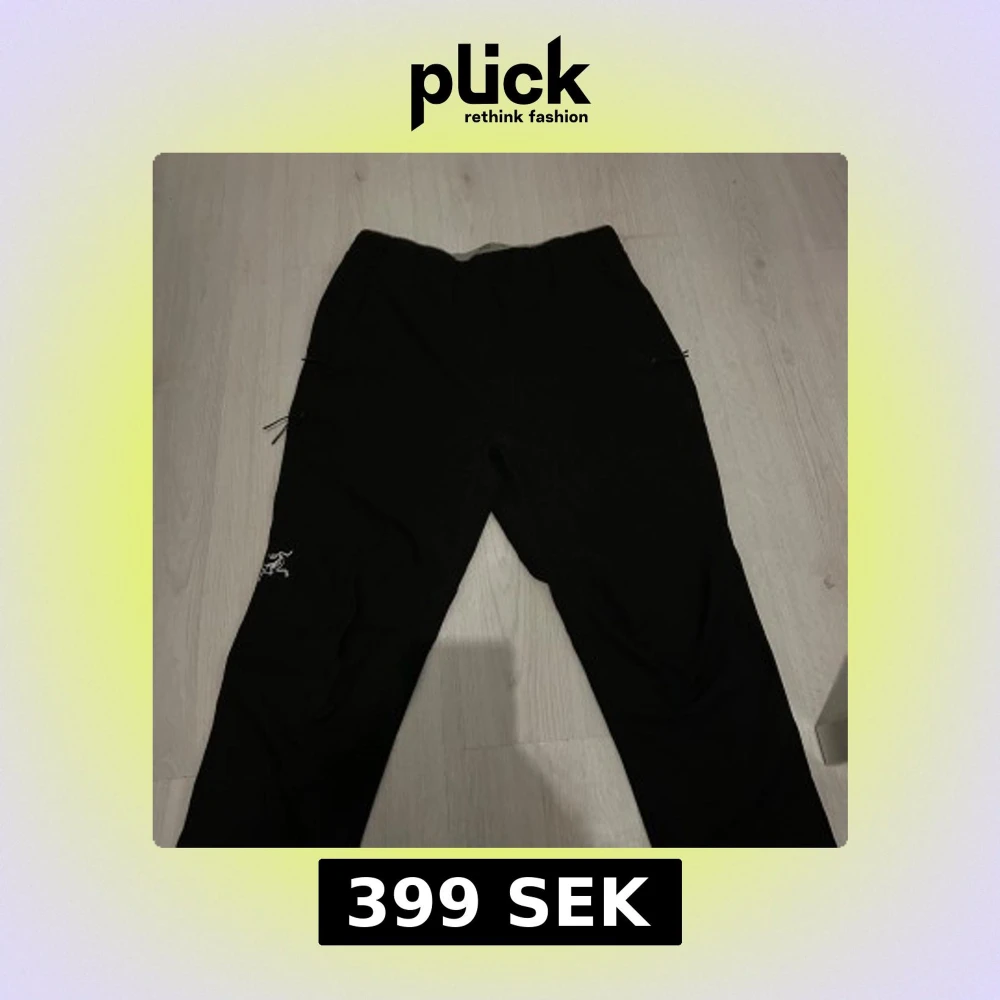 Svarta byxor från Arc'teryx med elastisk midja och snörning. Byxorna har smal passform, dragkedjeförsedda fickor och diskret Arc'teryx-logga på benet. Perfekta för dig som gillar stilrena och funktionella plagg. Passformen är typ XS eller S. Jag har haft dom i ca 1 år då jag säljer dom för dom är för små. Dom är också lite slitna vid foten av byxorna. Samt har också en airflow på sidan.