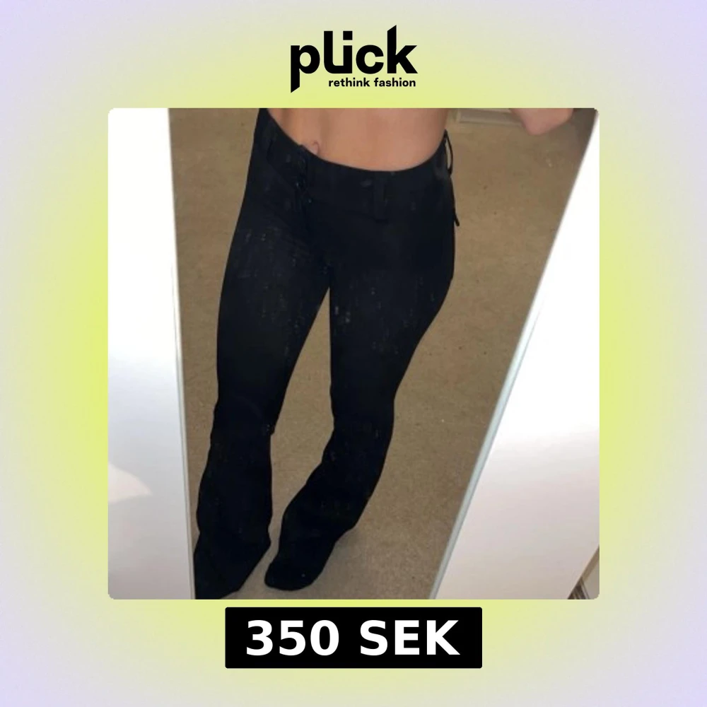 Snygga svarta byxor med bootcut passform och hög midja. Byxorna har knappar framtill och sitter tight över låren innan de blir vidare nedtill. Perfekta för dig som gillar en trendig siluett och vill ha ett par stilrena svarta byxor.