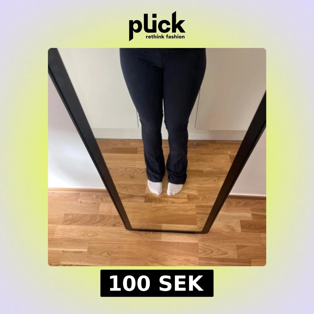 Svarta byxor från 157 i storlek XS. Modellen är bootcut med utsvängda ben och sitter tight upptill. Byxorna är gjorda i mjukt bomullsmaterial med stretch för en bekväm passform. Perfekta för dig som gillar en klassisk och enkel look.