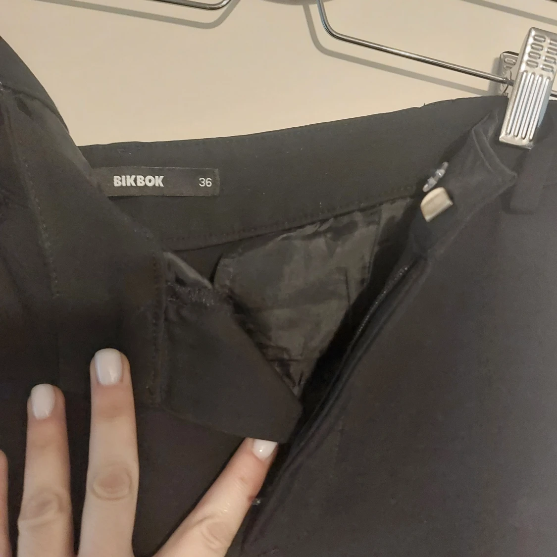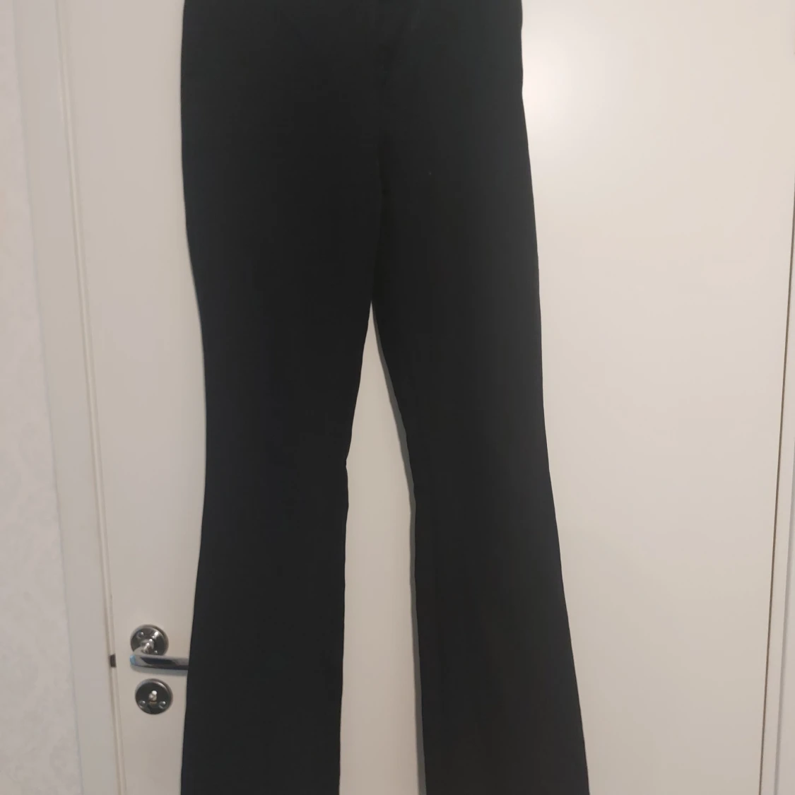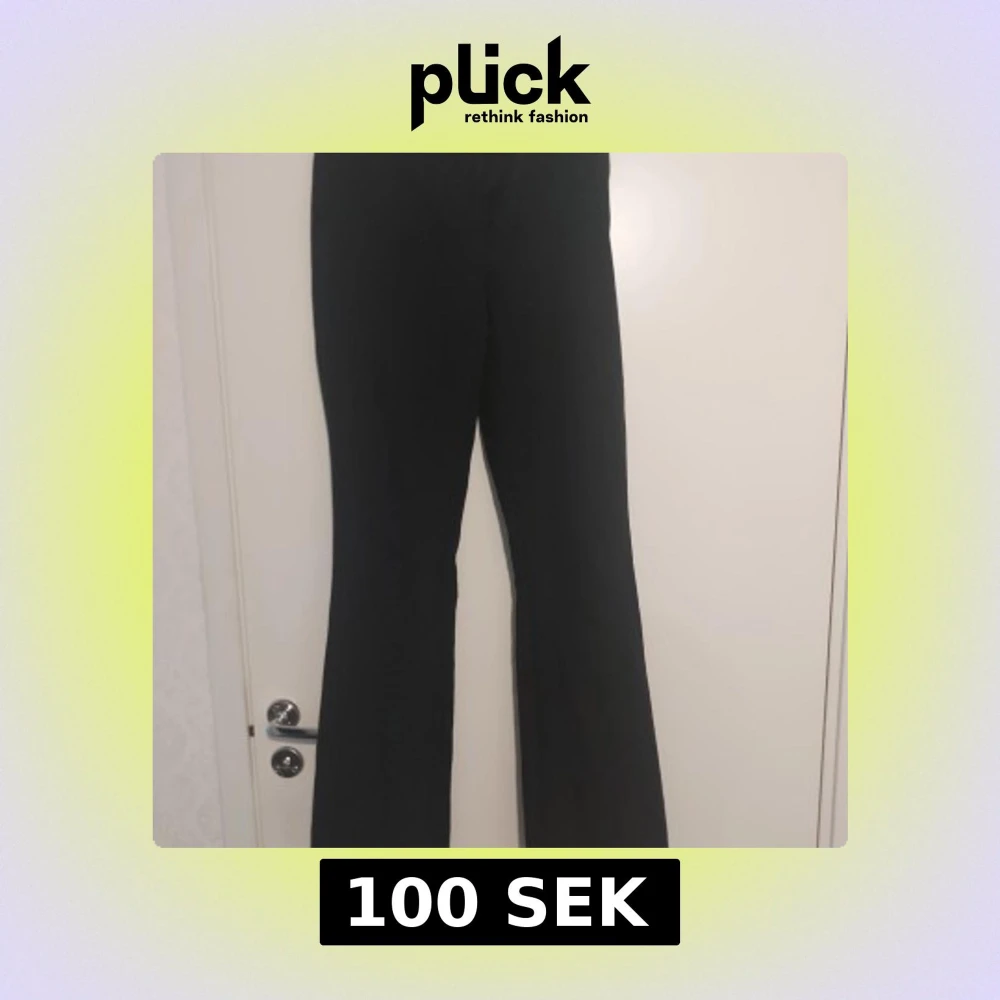 Svarta bootcut byxor från BikBok i storlek 36. Byxorna har en klassisk passform med utsvängda ben och stängs med dragkedja och knapp. Perfekta för en stilren och trendig look.