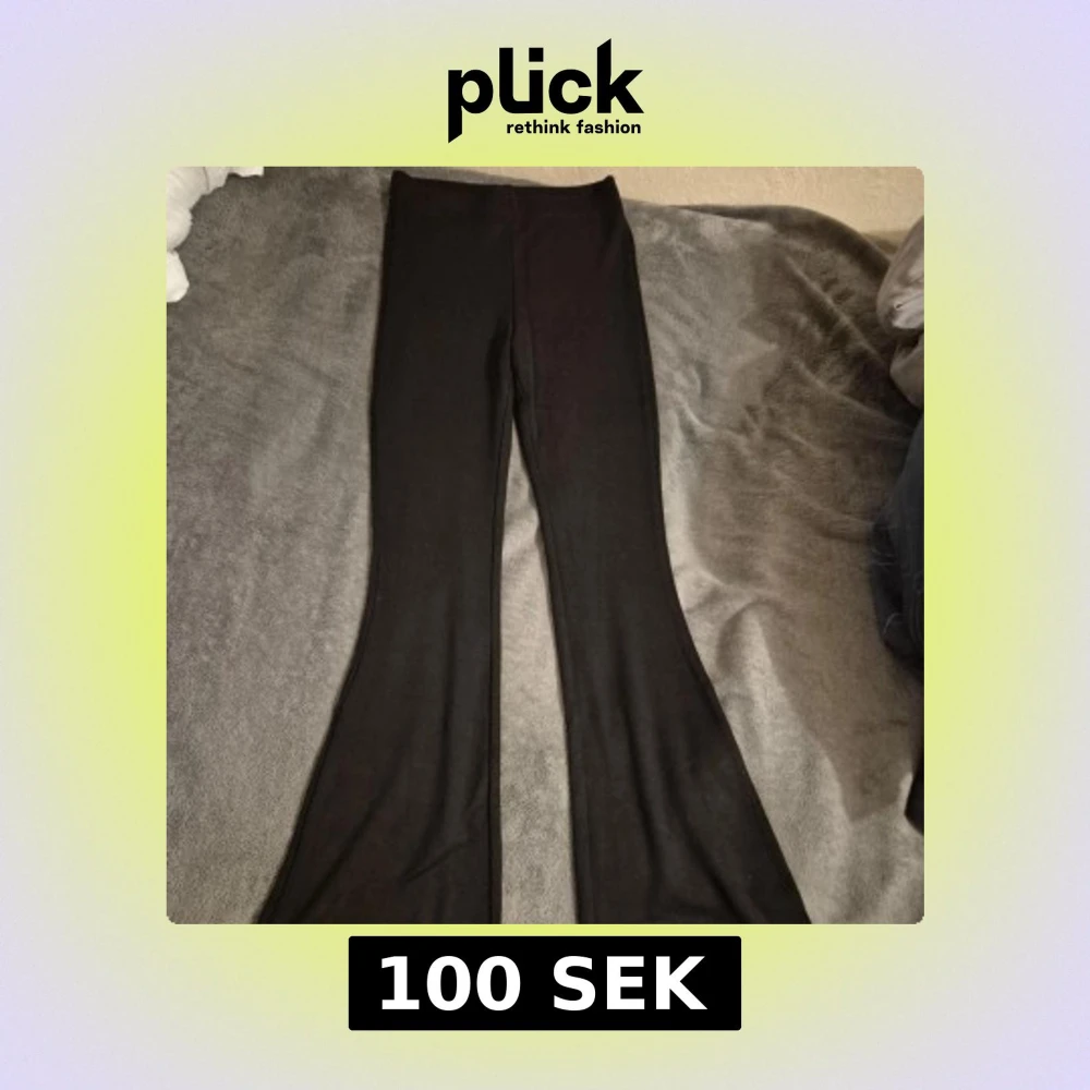 Svarta bootcut byxor från H&M Divided i storlek XS. Byxorna har hög midja och är gjorda i ett stretchigt material med viskos, polyamid och elastan. Snygg passform som sitter tajt upptill och släpper ut vid bensluten.