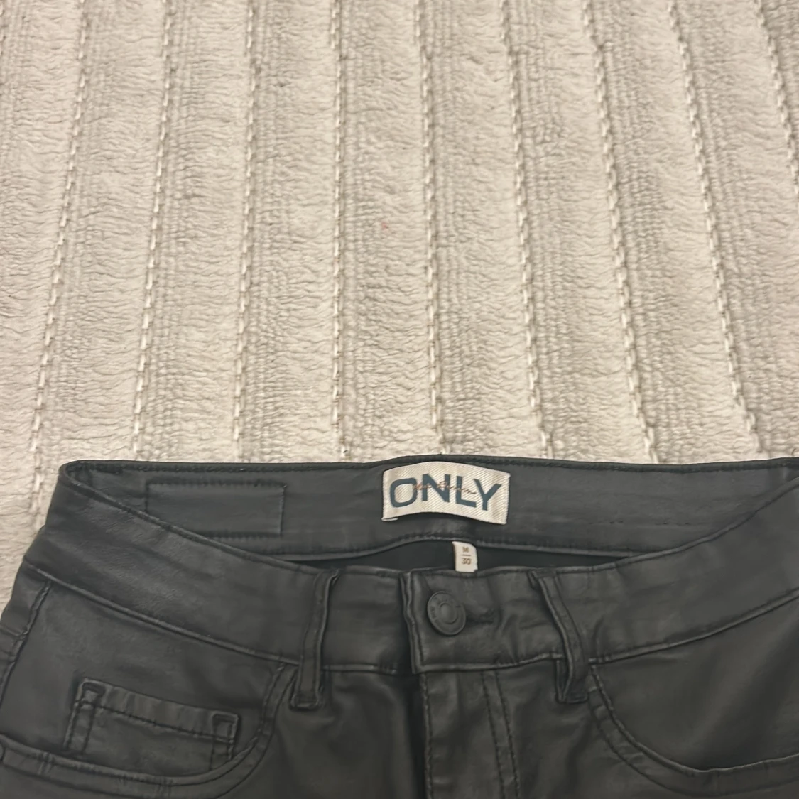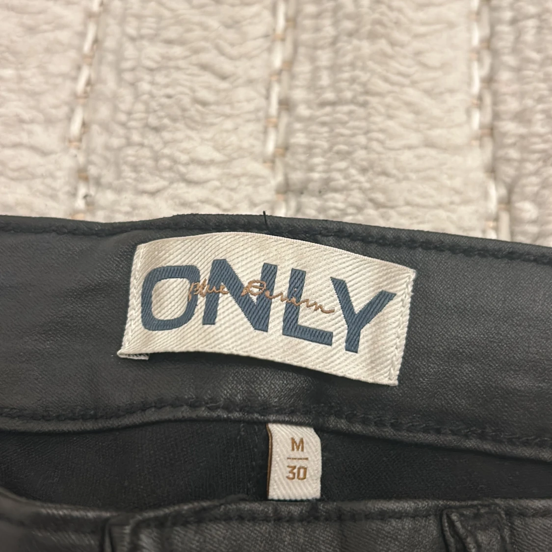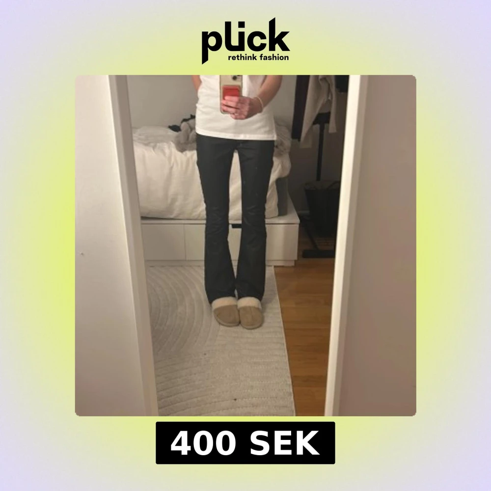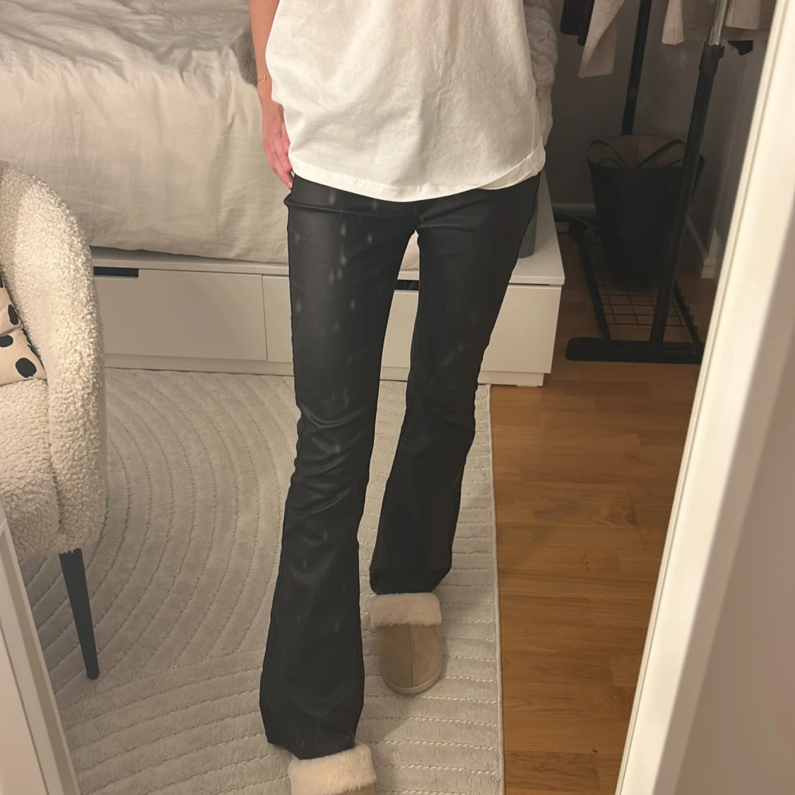 Snygga svarta bootcut skinnbyxor från ONLY. De har en ganska hög midja men inget man tänker på så länge man inte har en kortare T-shirt/ tröja. Passar till ALLT. Super sköna och trendiga byxor. Jag är 168cm lång. De är stretchiga i midjan. De har inga slitningar eller fläckar. !Kontakta mig innan ni köper!