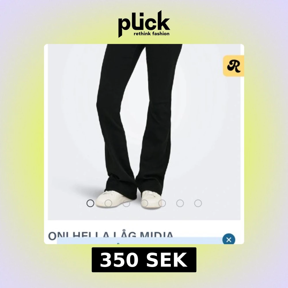 Svarta bootcut byxor från Only med låg midja. Byxorna har en klassisk passform med utsvängda ben och är tillverkade i ett mjukt material som ger en snygg siluett. Perfekta att styla med sneakers eller boots.