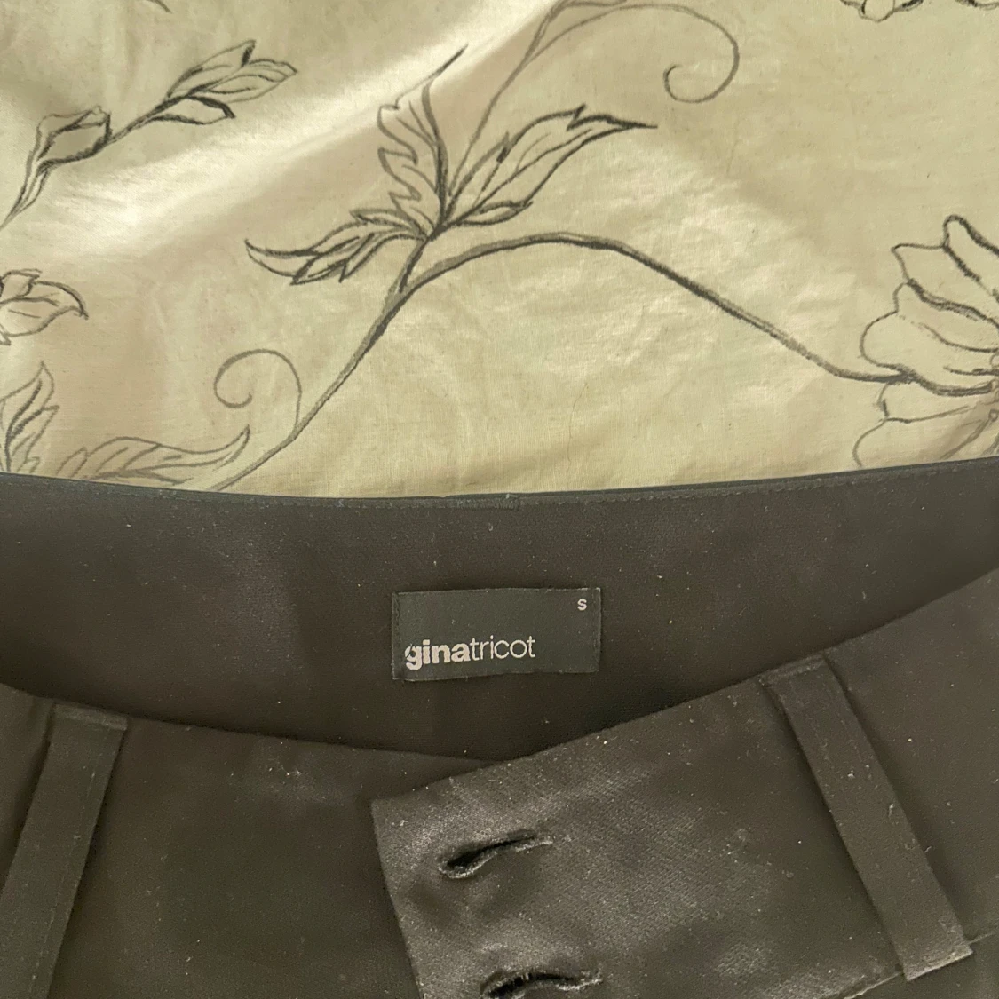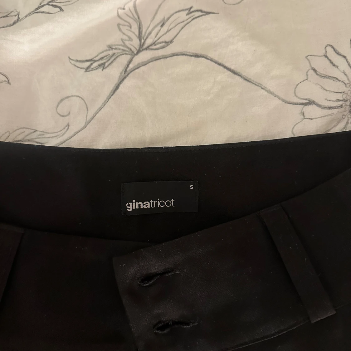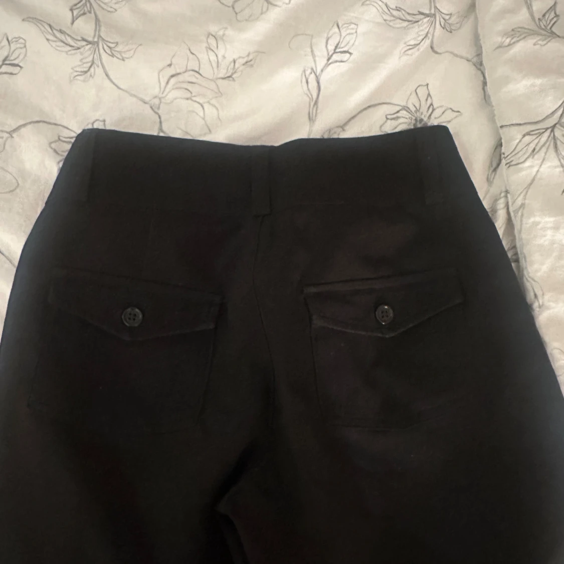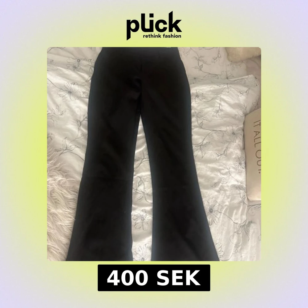 Svarta bootcut-byxor från Gina Tricot i storlek S. Byxorna har ganska låg midja, booutcut form och snygga bakfickor med lock och knapp. Perfekta för dig som gillar en stilren look med lite edge. Materialet känns mjukt och följsamt. Skriv privat för fler frågor osv, de är slutsålda på hemsidan och de är i väldigt bra skick då jag tyvärr inte har kunnat använda de mycket pga att de är för stora för mig💗