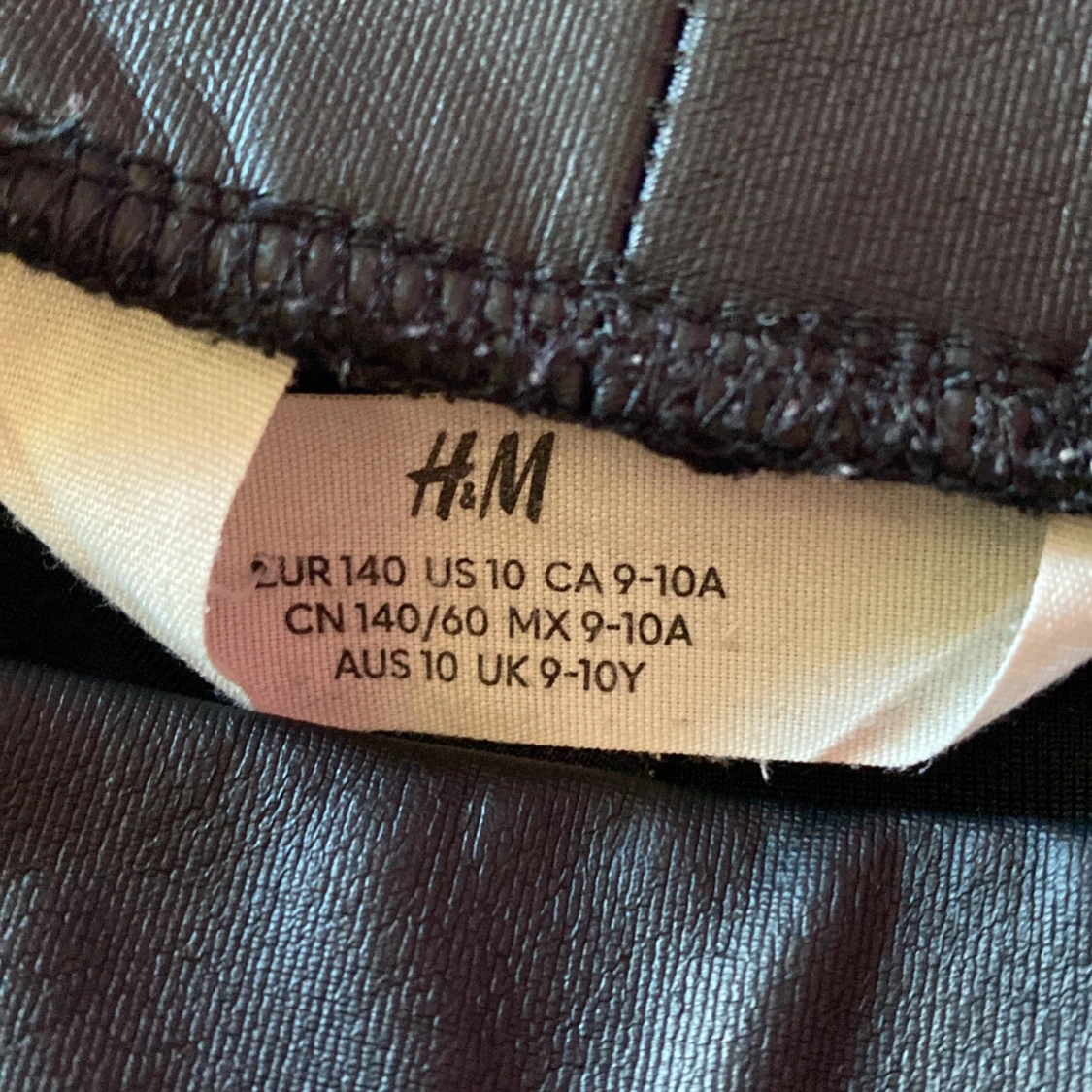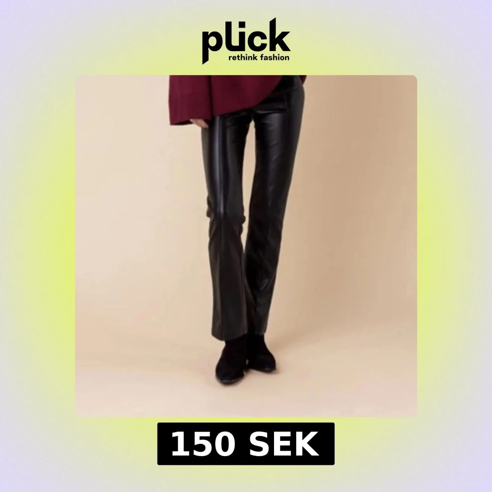 Snygga svarta byxor i skinnimitation från H&M med bootcut-modell. Byxorna har en glansig finish och sitter tajt upptill med utsvängda ben. Perfekta för dig som vill ha en edgy och trendig look.