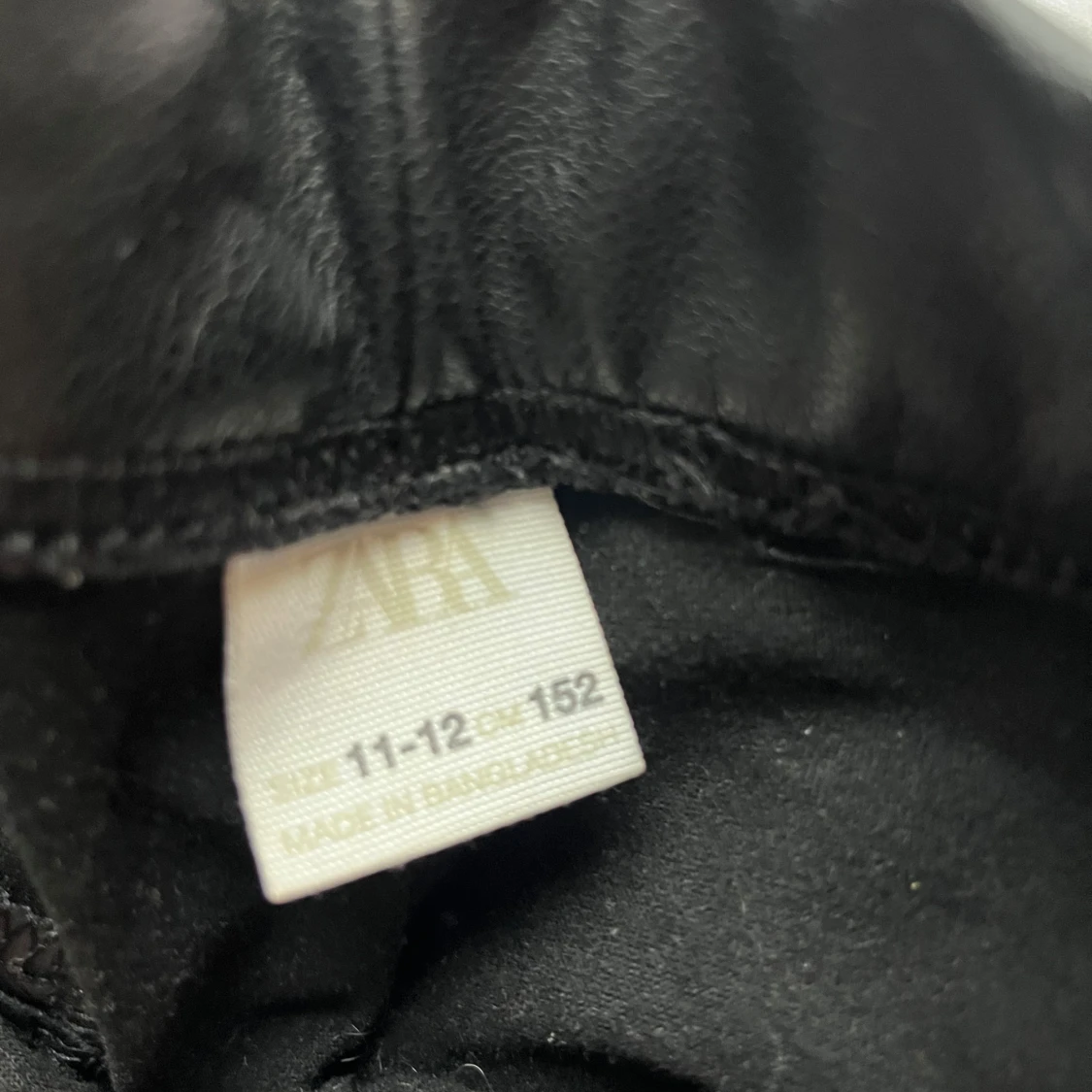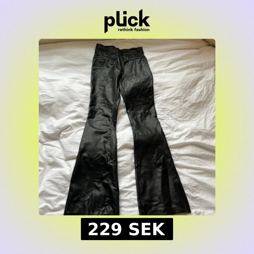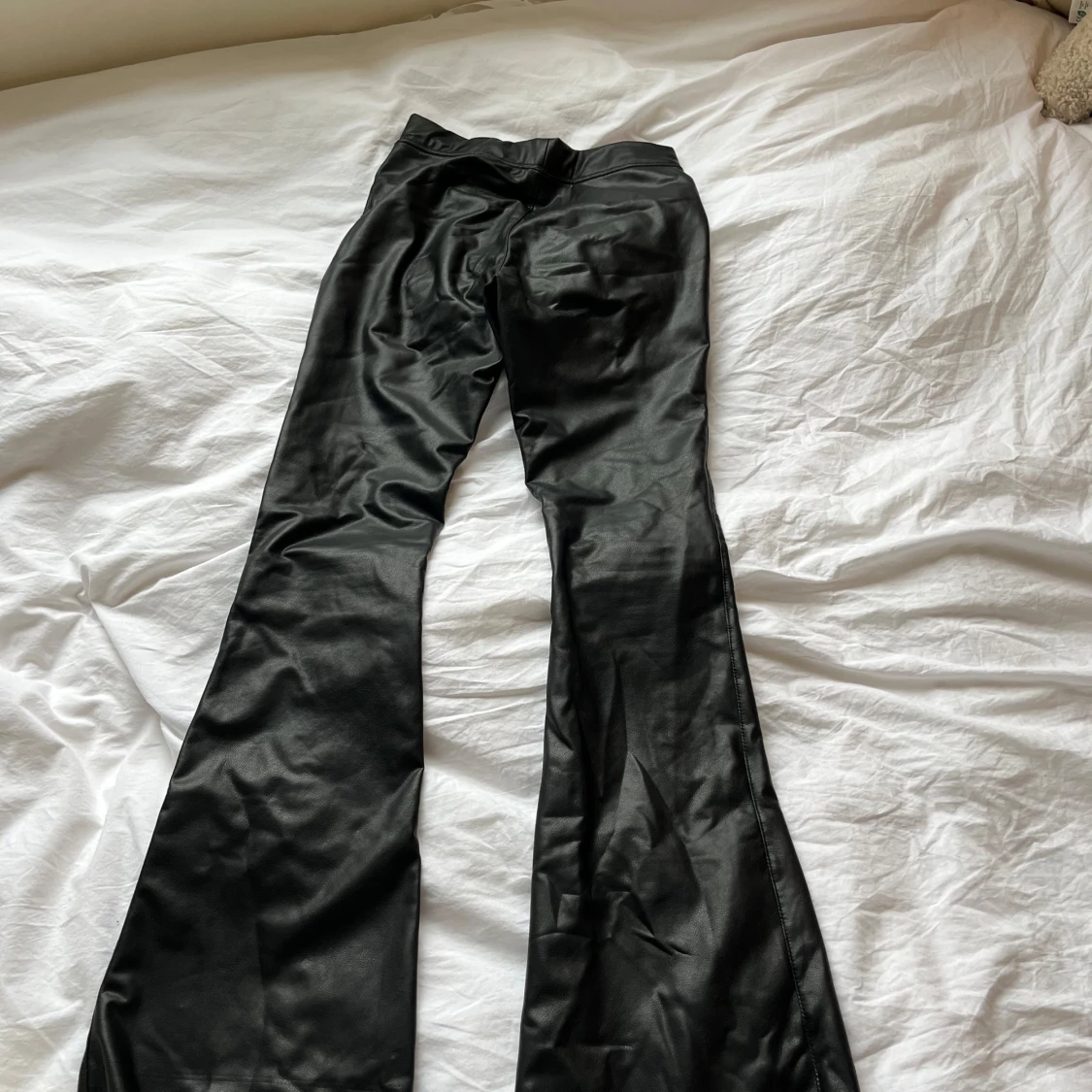 Snygga svarta bootcut byxor från Zara i skinnimitstation, säljer pga att jag har ett par exakt likadana❤️har sprättat ut dom längst ner
