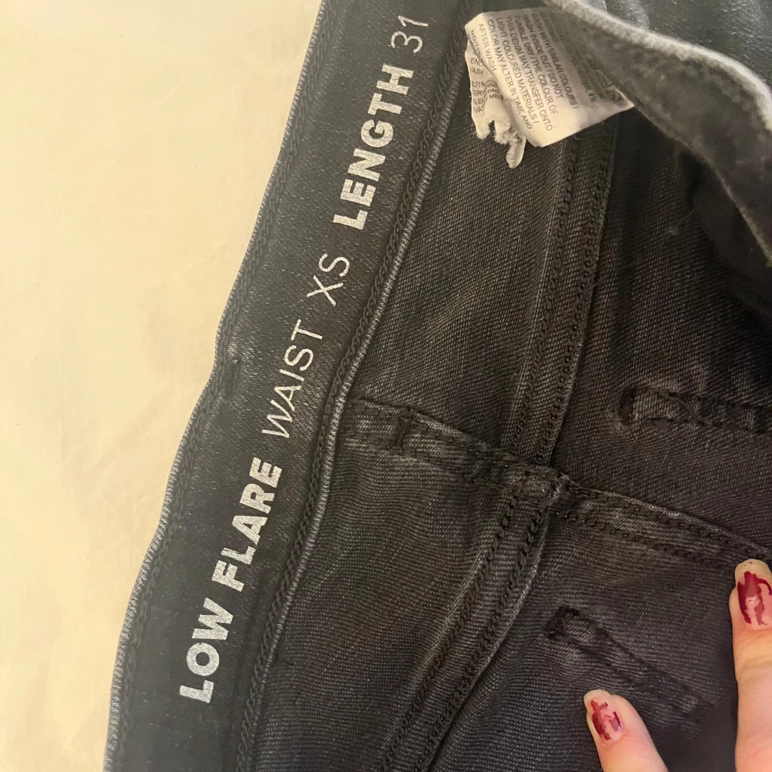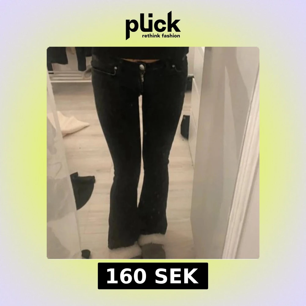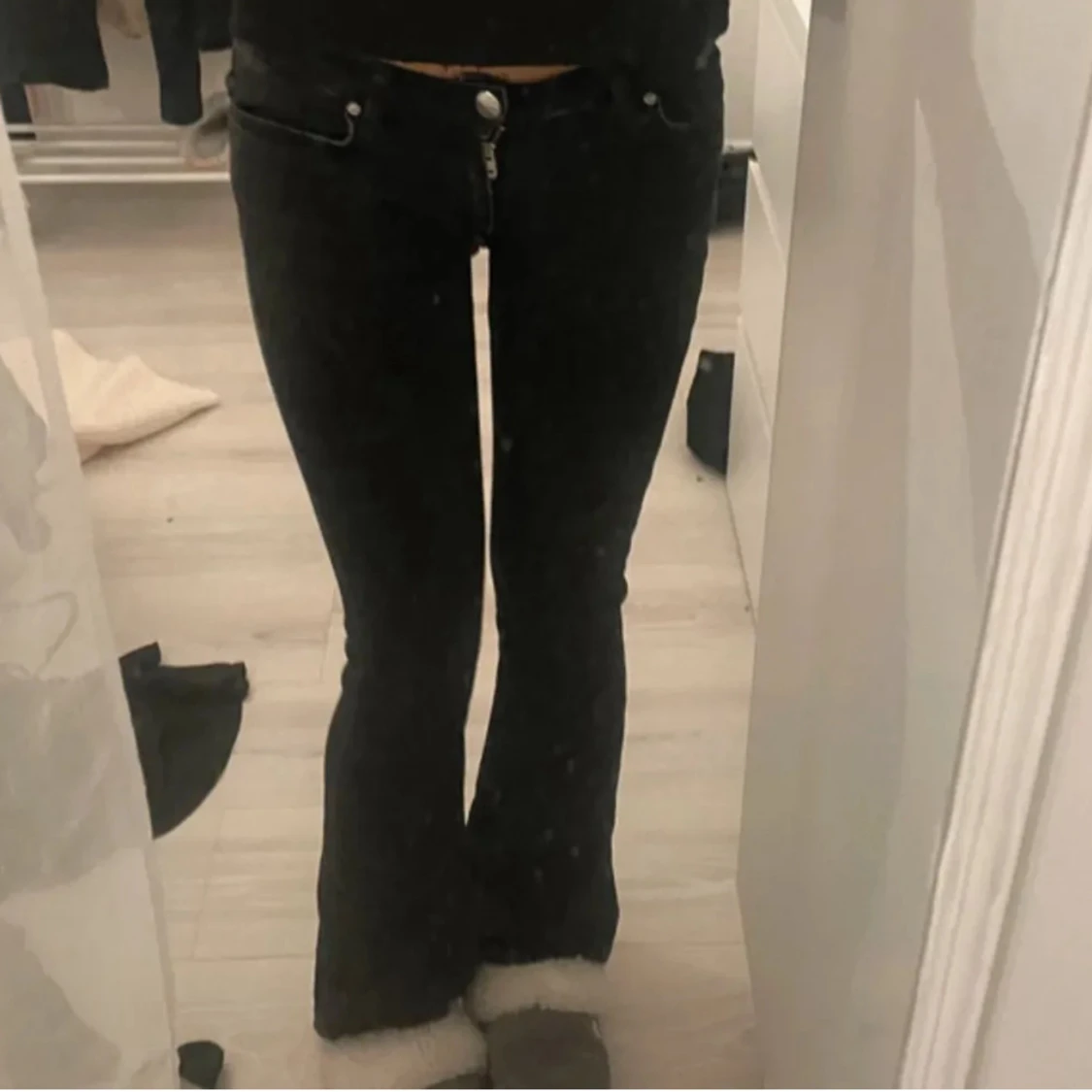 Svarta byxor med bootcut passform och låg midja. Byxorna har dragkedja och knapp framtill samt fickdetaljer med knappar. Perfekta för dig som gillar en klassisk och stilren look. OBS inte min bild men exakt samma jeans, skriv om ni vill ha fler bilder