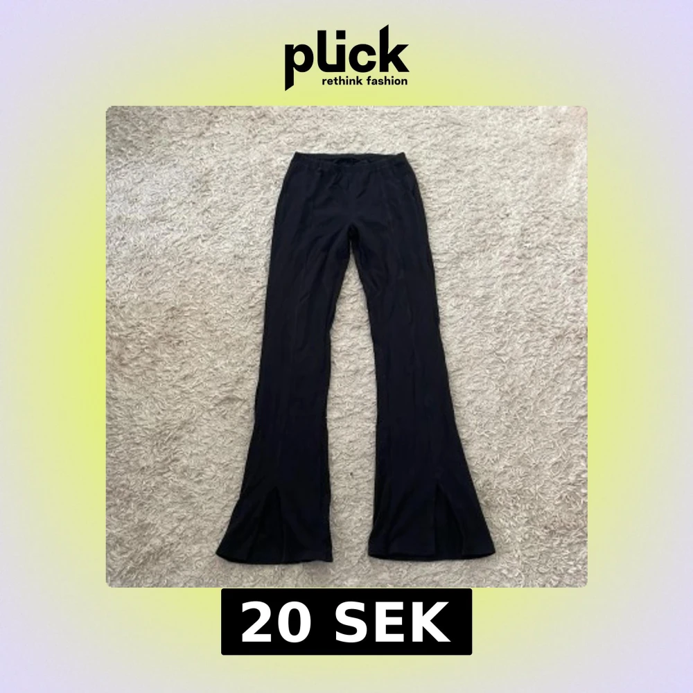 Snygga svarta bootcut byxor med slits framtill vid bensluten. Byxorna har en tight passform upptill och vida ben nertill, vilket ger en riktigt trendig siluett. Perfekta att styla med sneakers eller boots för en cool look.