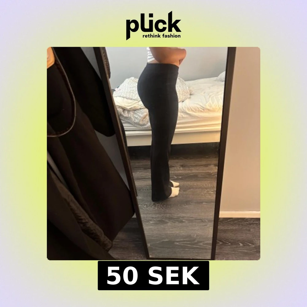 Snygga svarta bootcut byxor med hög midja och slits vid benslutet. Byxorna har en tight passform upptill och faller rakt ner över benen. Perfekta för dig som gillar en stilren look med en twist. Materialet känns mjukt och stretchigt.
