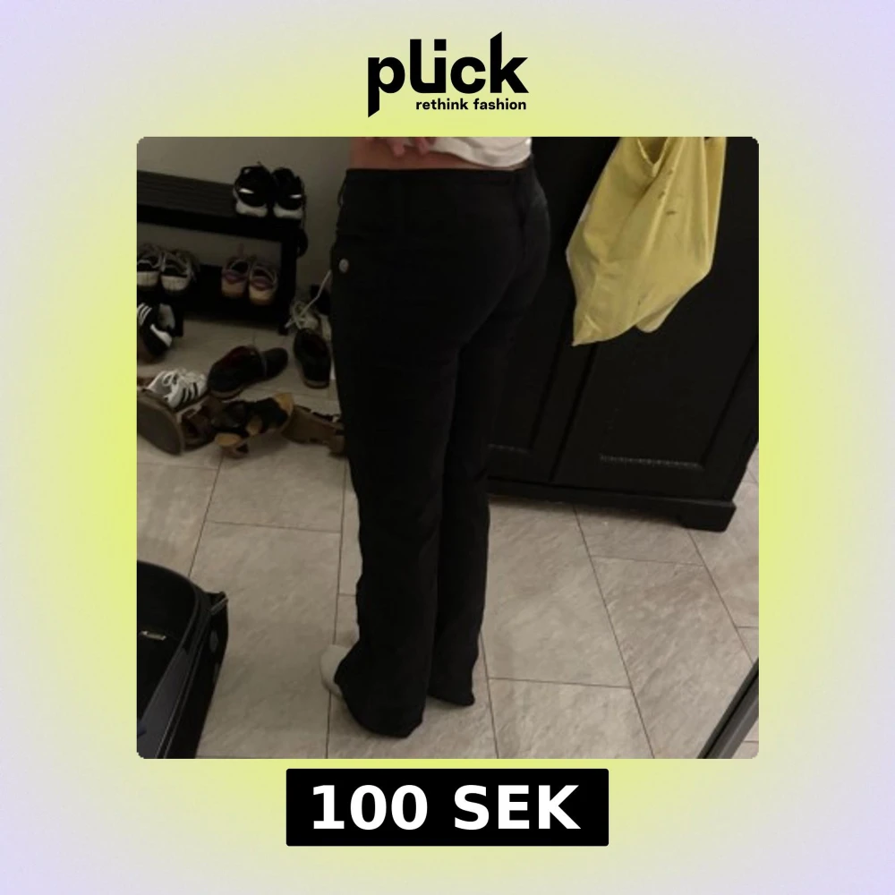 Fick av en kompis som har sytt om de i grenen till low waist. Byxorna är väl använda och en av bälteshällorna (öglorna där man trär in bälten) är trasig