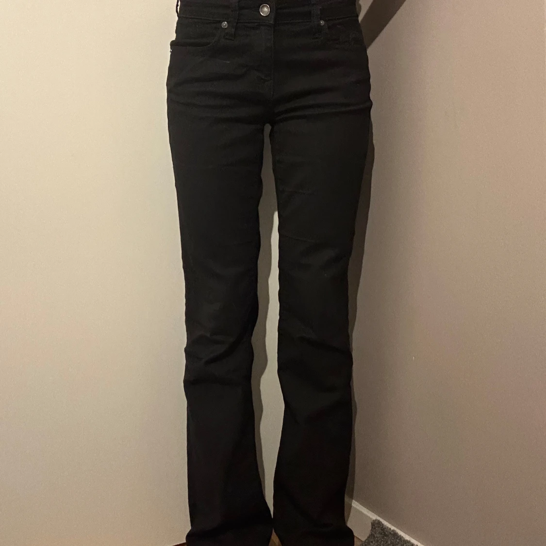 Snygga svarta bootcut jeans med medel hög midja aldrig använda!