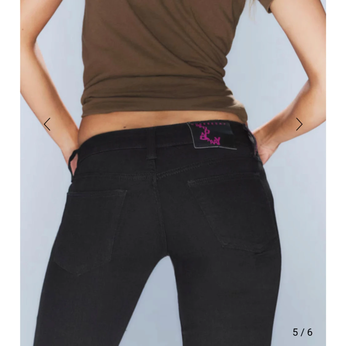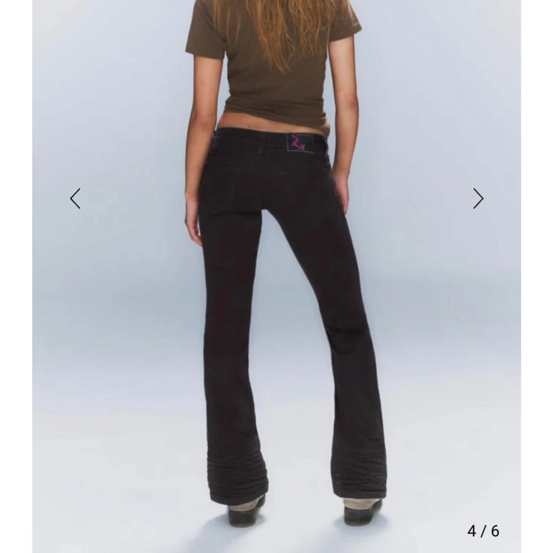 Snygga svarta bootcut jeans med låg midja och en tight passform. Jeansen är endast testade en gång men säljer på grund av att jag ej kunde knäppa de i midjan, kan int lämna tillbaka då de jag drog bort lappen innan jag testade