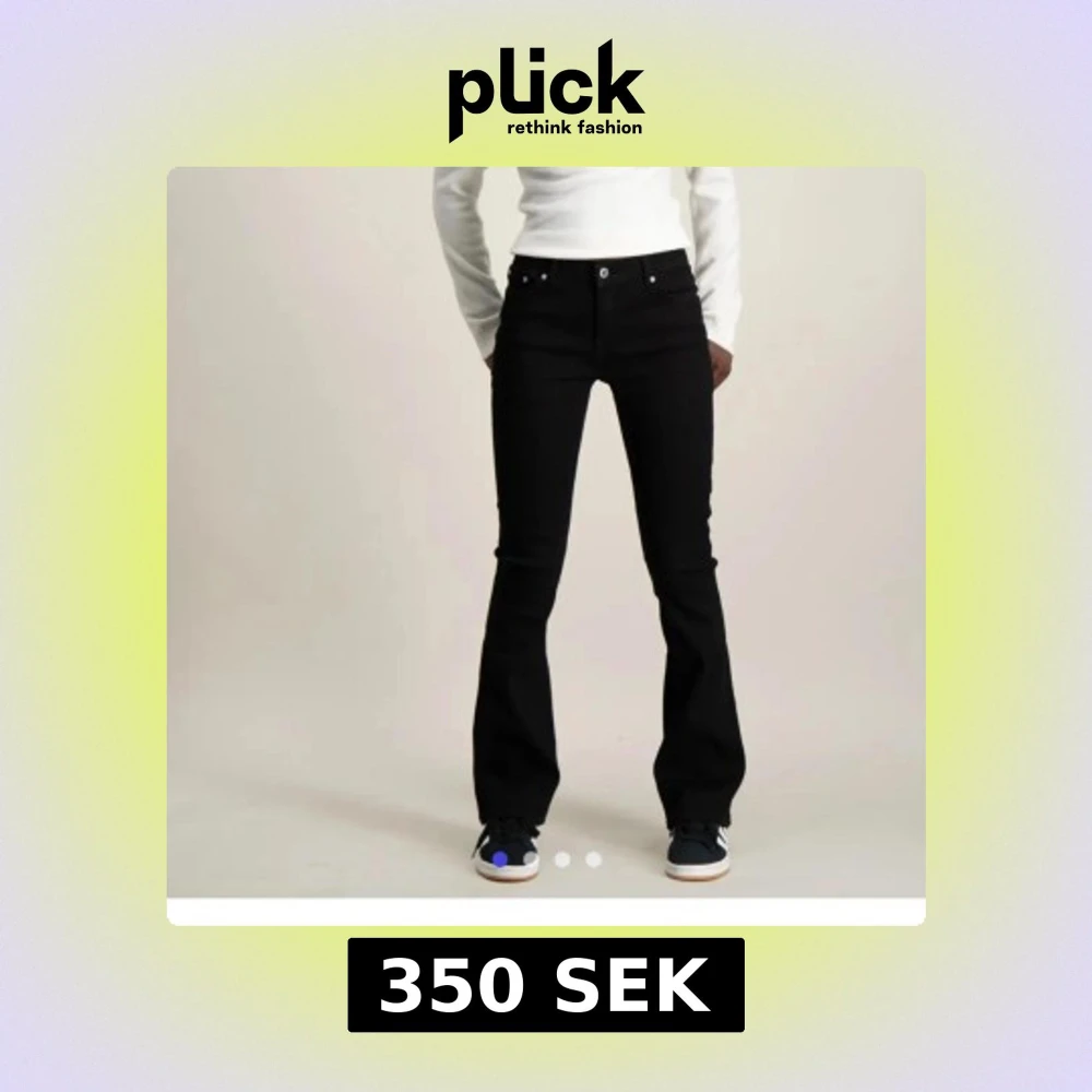 Snygga svarta bootcut jeans med hög midja. De har en klassisk femficksdesign och stängs med dragkedja och knapp. Perfekta för en stilren look. Storlek barn 182 men sitter bra på mig som är 173 och bär S, de går att dra åt i midjan vilket är as nice!!💋de är aldrig använda