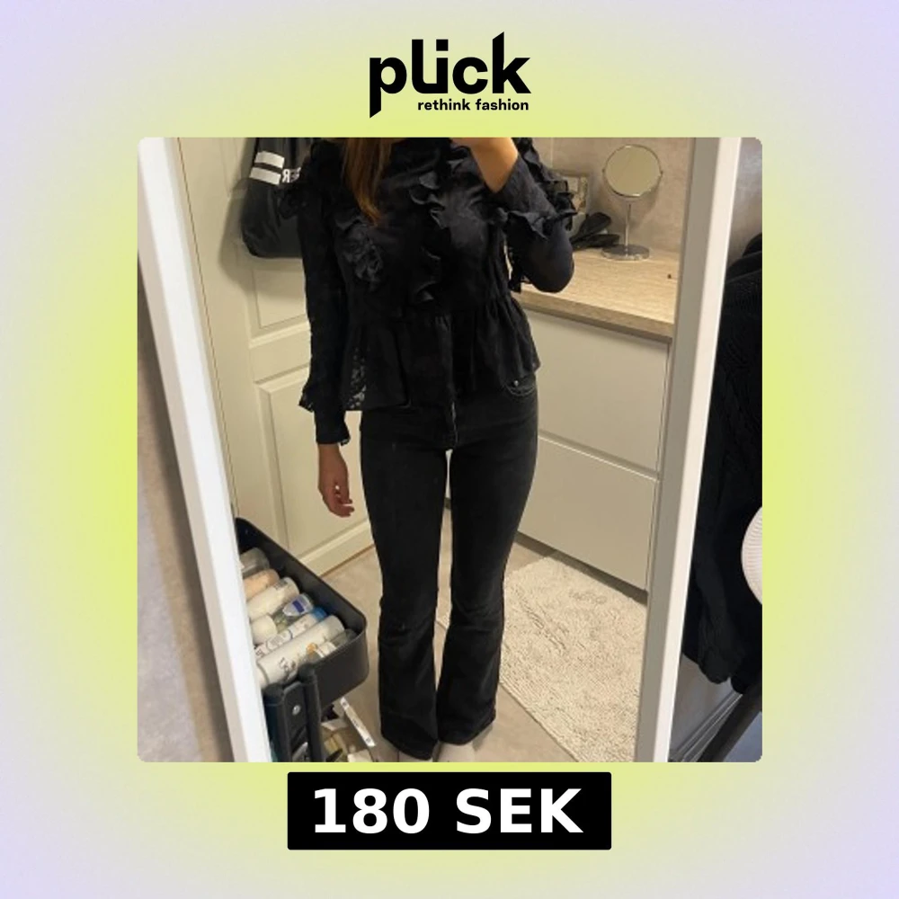 Ett par svarta bootcut jeans från Ginatricot i storlek 34, sparsamt använda