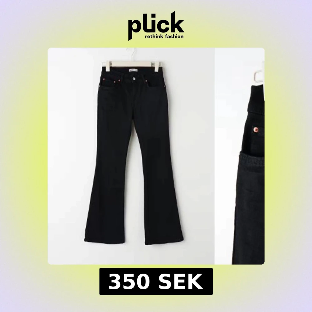 Snygga svarta bootcut jeans med klassisk femficksdesign och knappgylf. Perfekta för en stilren look. Jag köpte dom från Gina men har bara haft på mig dom en gång och de va när jag skulle se hur dom passade, insåg snabbt att dom va för korta. Ja säljer dom för 350kr eftersom dom är helt nya men priset går alltid att diskutera! Om man har några frågor eller vill ha mer bilder/ eller mått är de bara att höra av sig!🥰