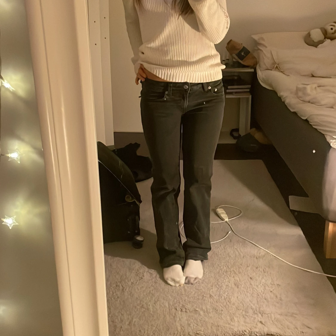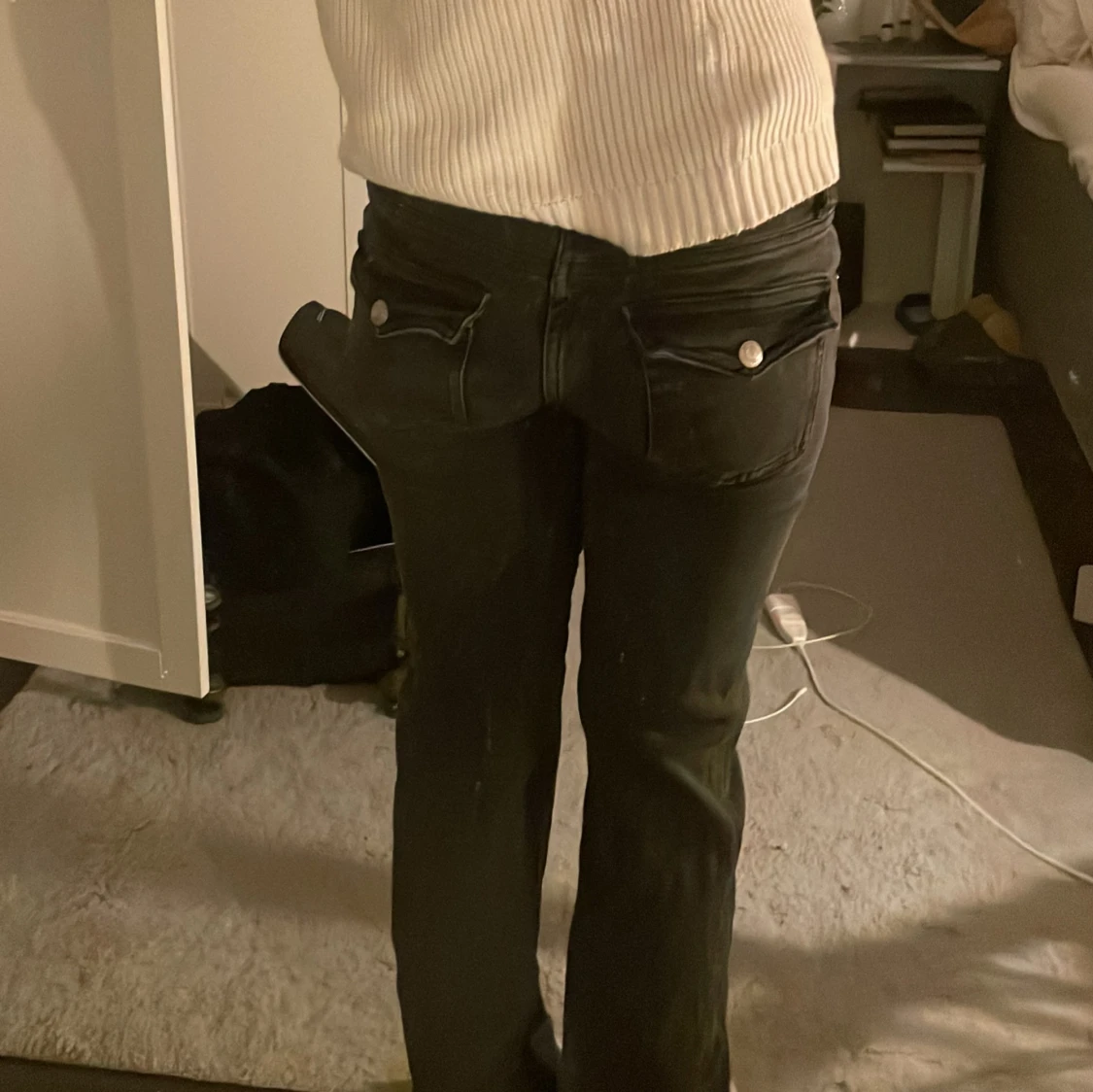 Svarta jeans från lager 157 med fina knappfickor, har sytt dem lågmidjade 💗