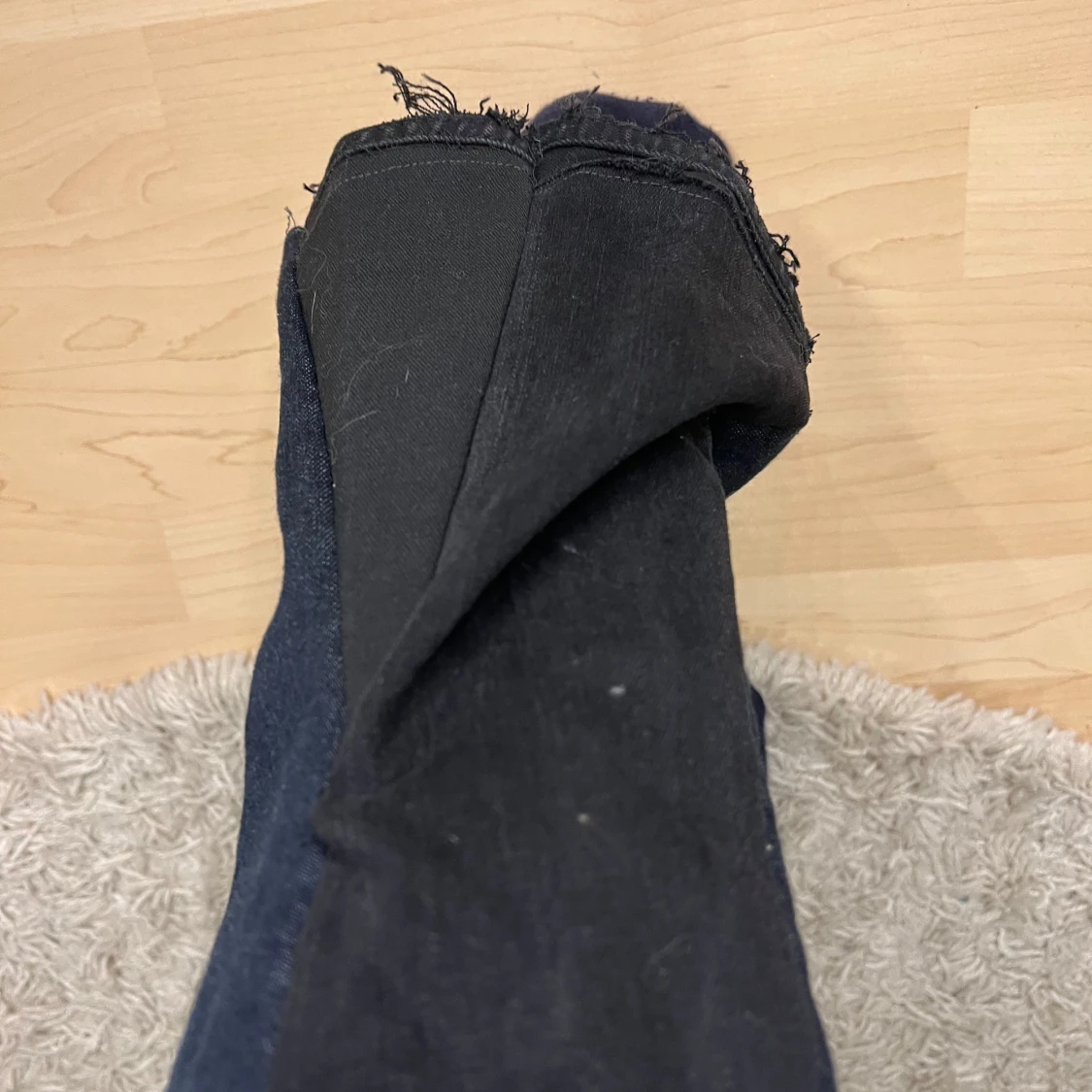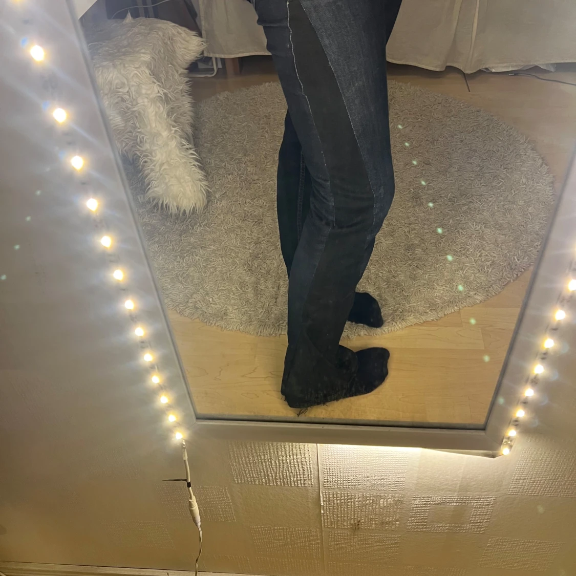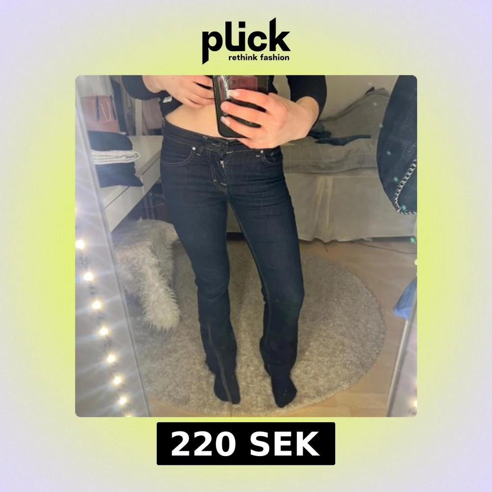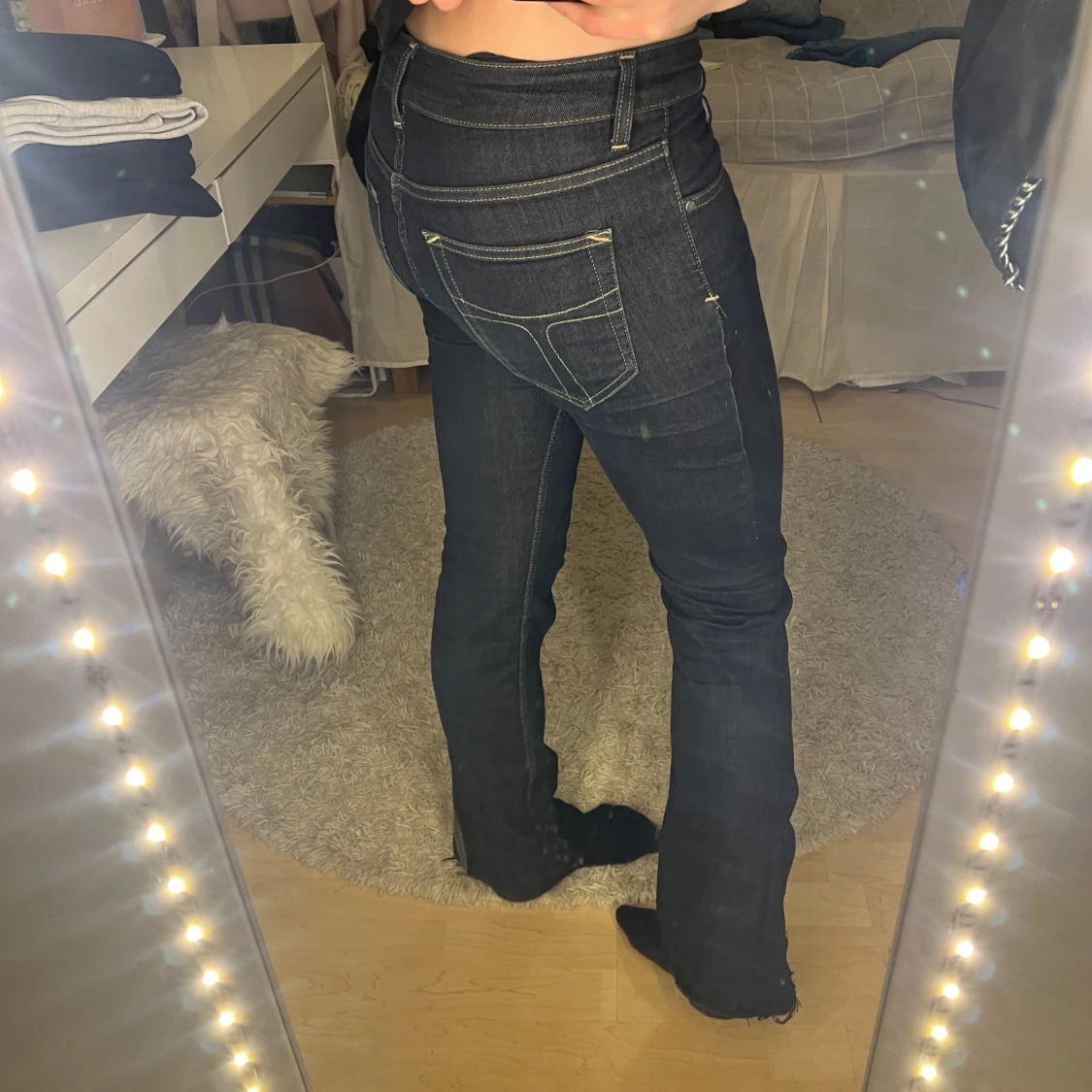 Snygga svarta bootcut jeans med låg midja, sytt den bootcut, passar xs/s