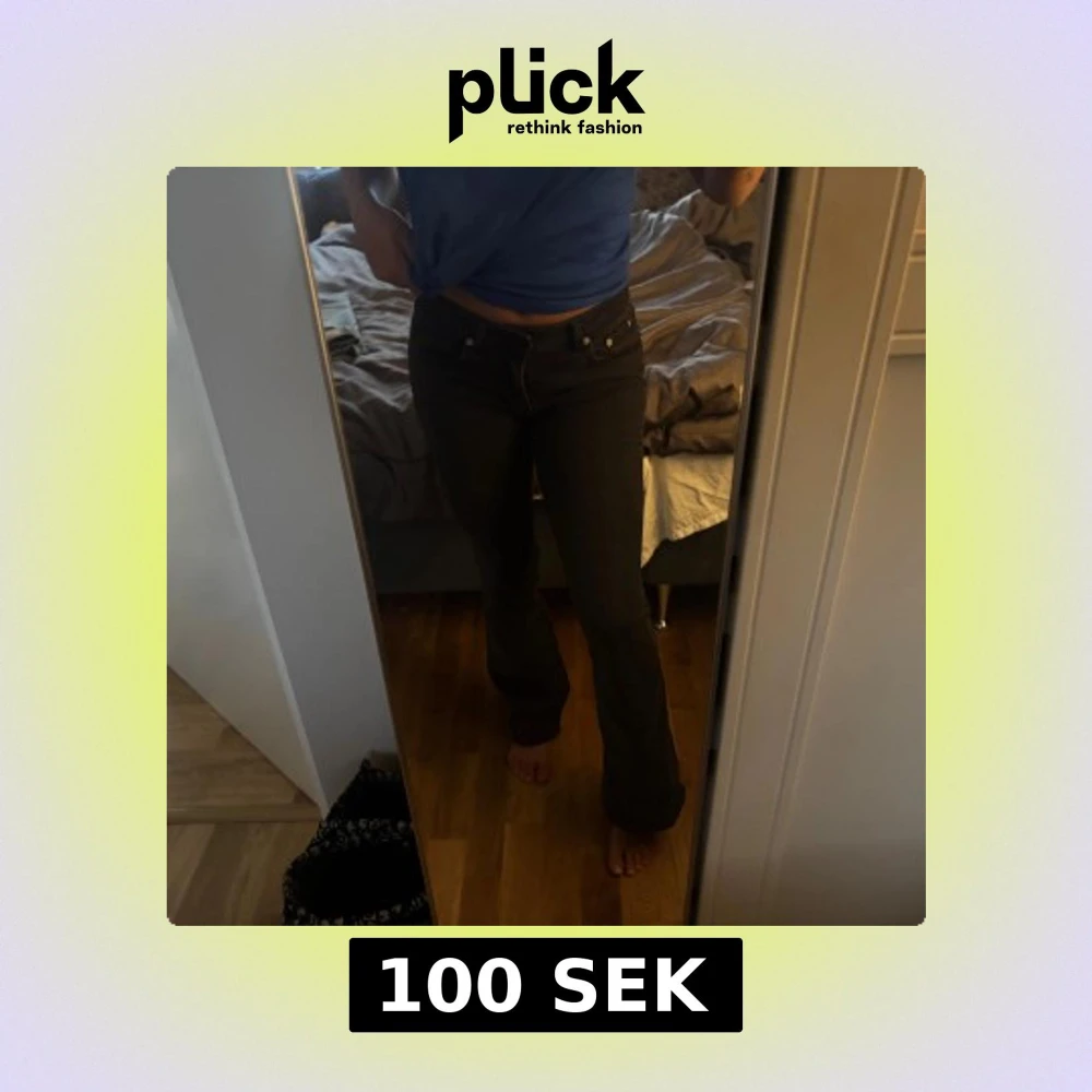 Säljer ett par svarta bootcut jeans från lager 157. De har klassisk femficksdesign, medel midja och är i stretchigt jeanstyg som sitter snyggt över höfterna och låren. Perfekta om du gillar en lite utsvängd look nertill.