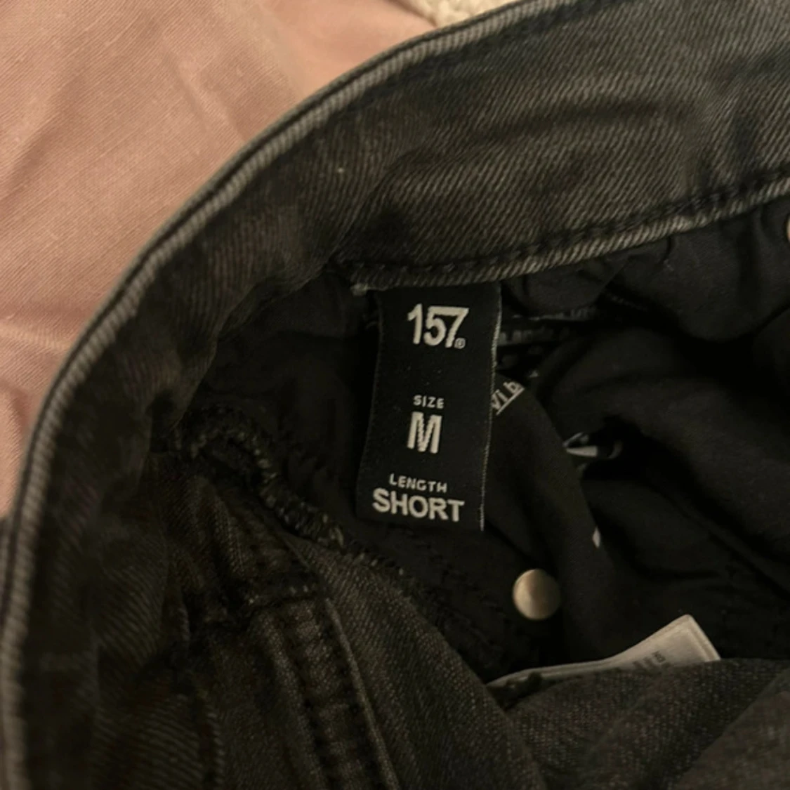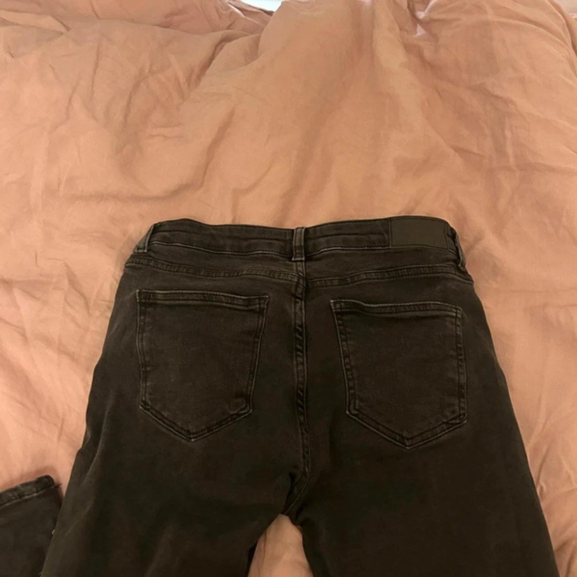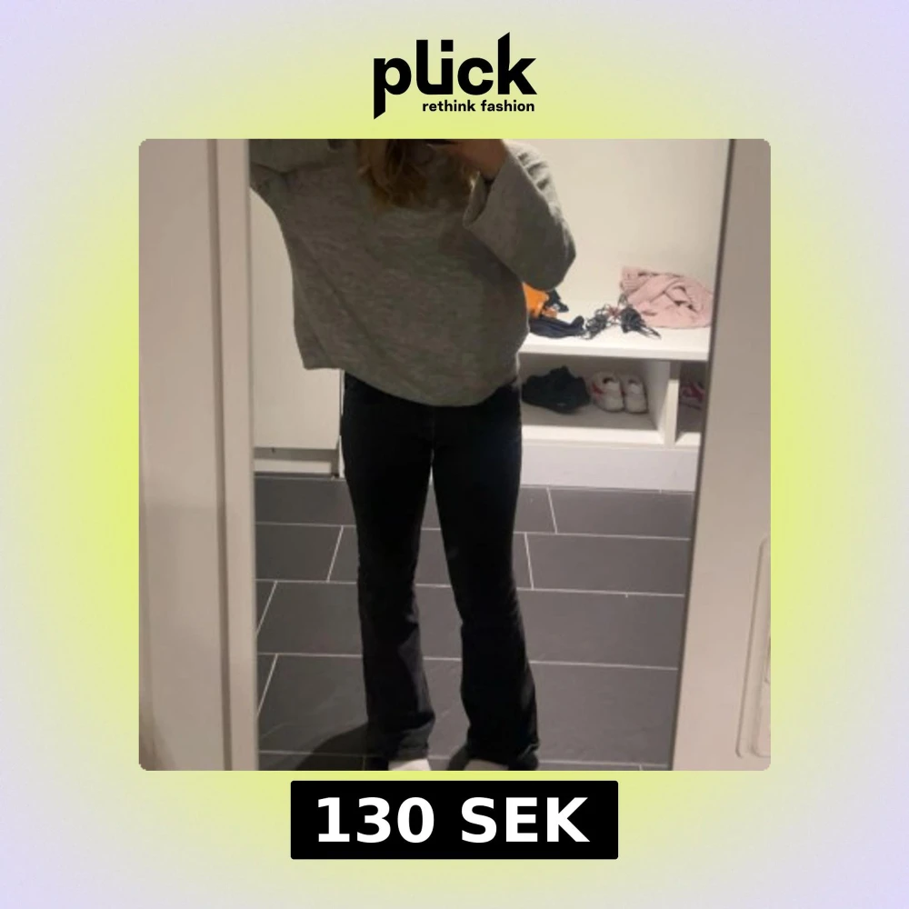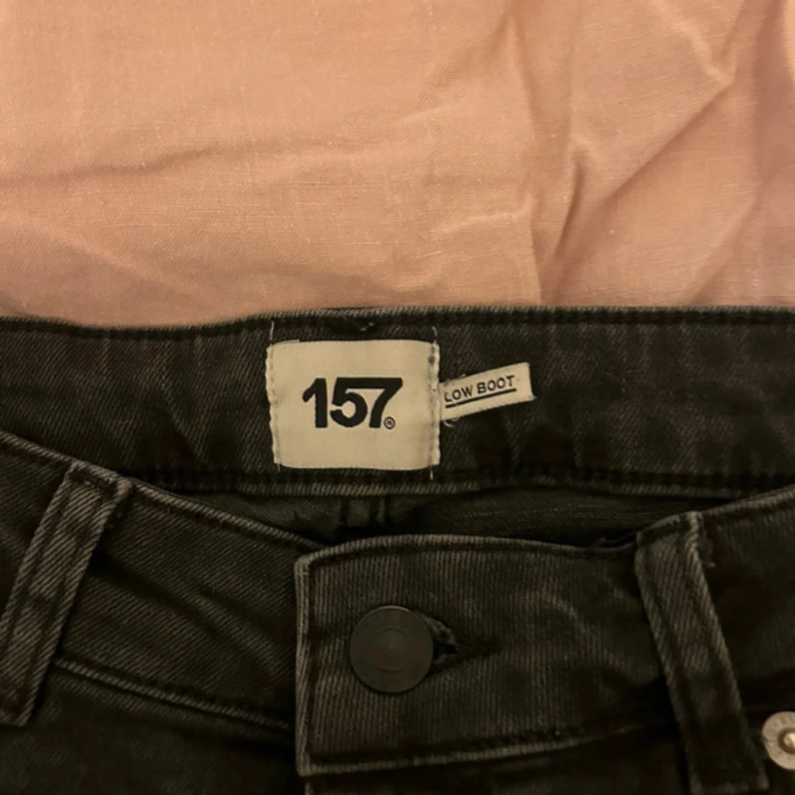 Säljer ett par svarta bootcut jeans från lager 157 i storlek M. Jeansen har låg midja, klassiska bakfickor och en snygg, enkel look. Perfekt längd till mig som är 160cm då benlängd är short
