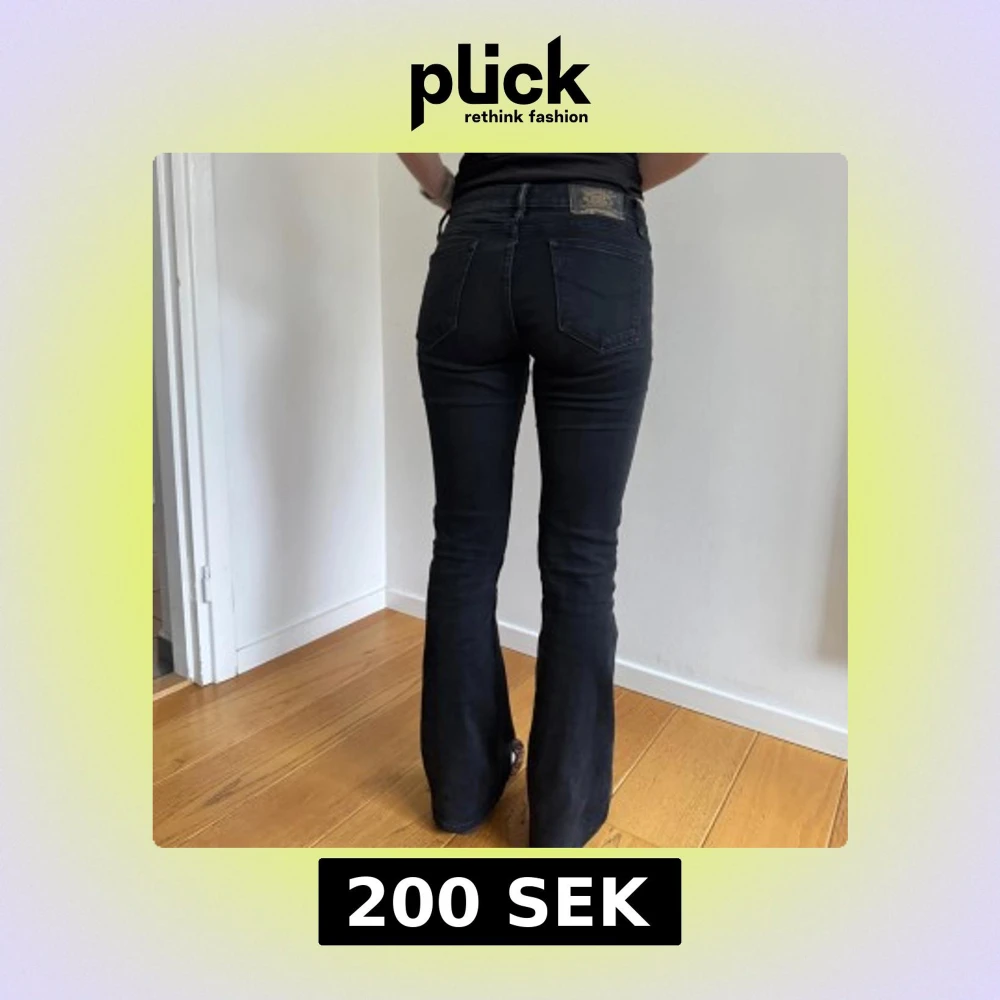 Svarta jeans från Crocker med bootcut-passform och klassisk femficksdesign. Jeansen har låg midja med lite stretch. Perfekta för dig som gillar en tidlös och snygg look. W26 L31