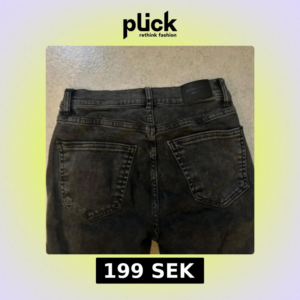 Snygga svarta jeans från Gina Tricot med bootcut-modell. Ett par riktiga klassiker. Har knappast använt och säljer då de tyvärr inte kommer till så stor användning🫶🏽 Köpte för 500 kr