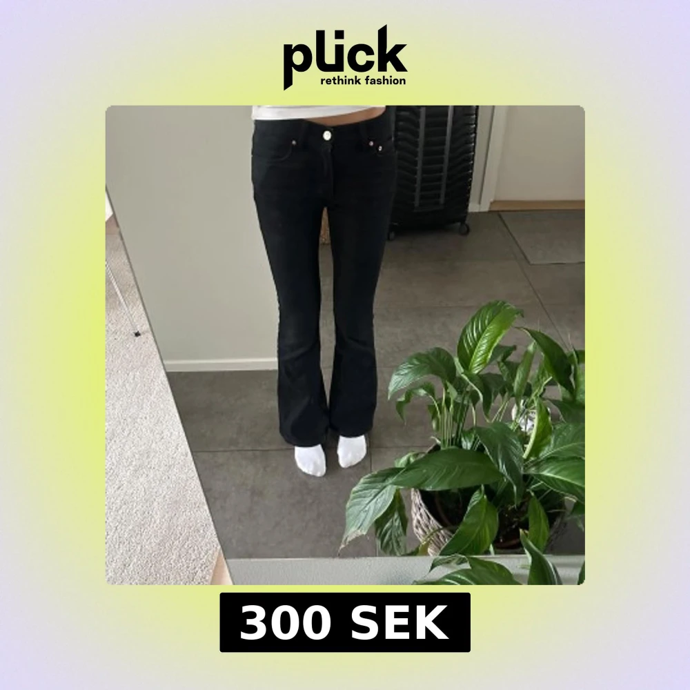 Säljer ett par svarta jeans med bootcut-modell från Gina. Säljer då de är för korta. Men passar nog 165-170c💕