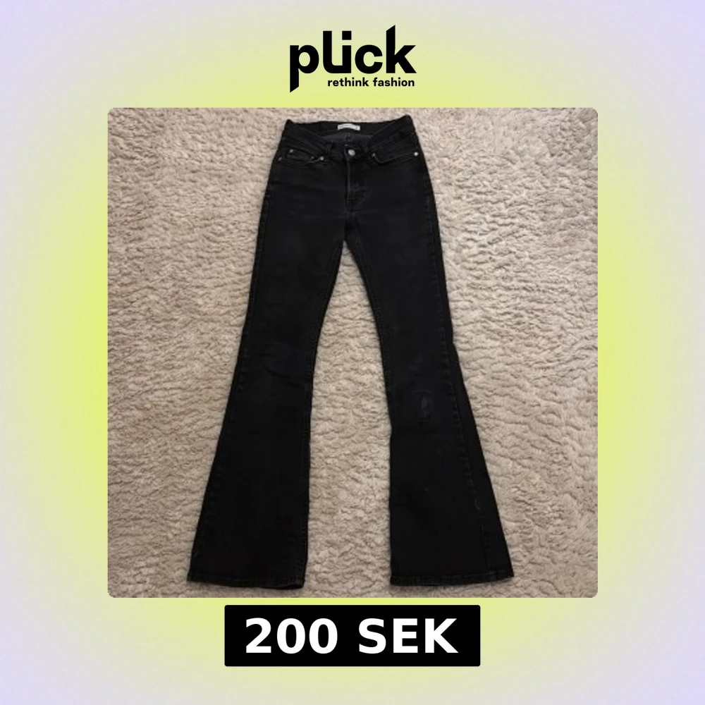 Snygga svarta bootcut jeans från Gina tricot. De har en klassisk femficksdesign med knapp och dragkedja framtill. Perfekta för en stilren look.