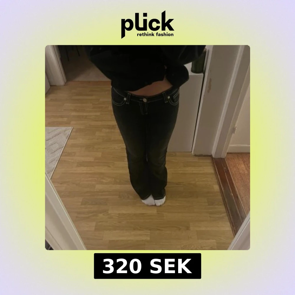 Svarta jeans från Gina Tricot med bootcut passform och låg midja. Snygga kontrastsömmar i vitt och dekorativa bakfickor med broderad detalj. Klassisk femficksmodell i stretchig bomullsblandning, perfekta för en trendig look.