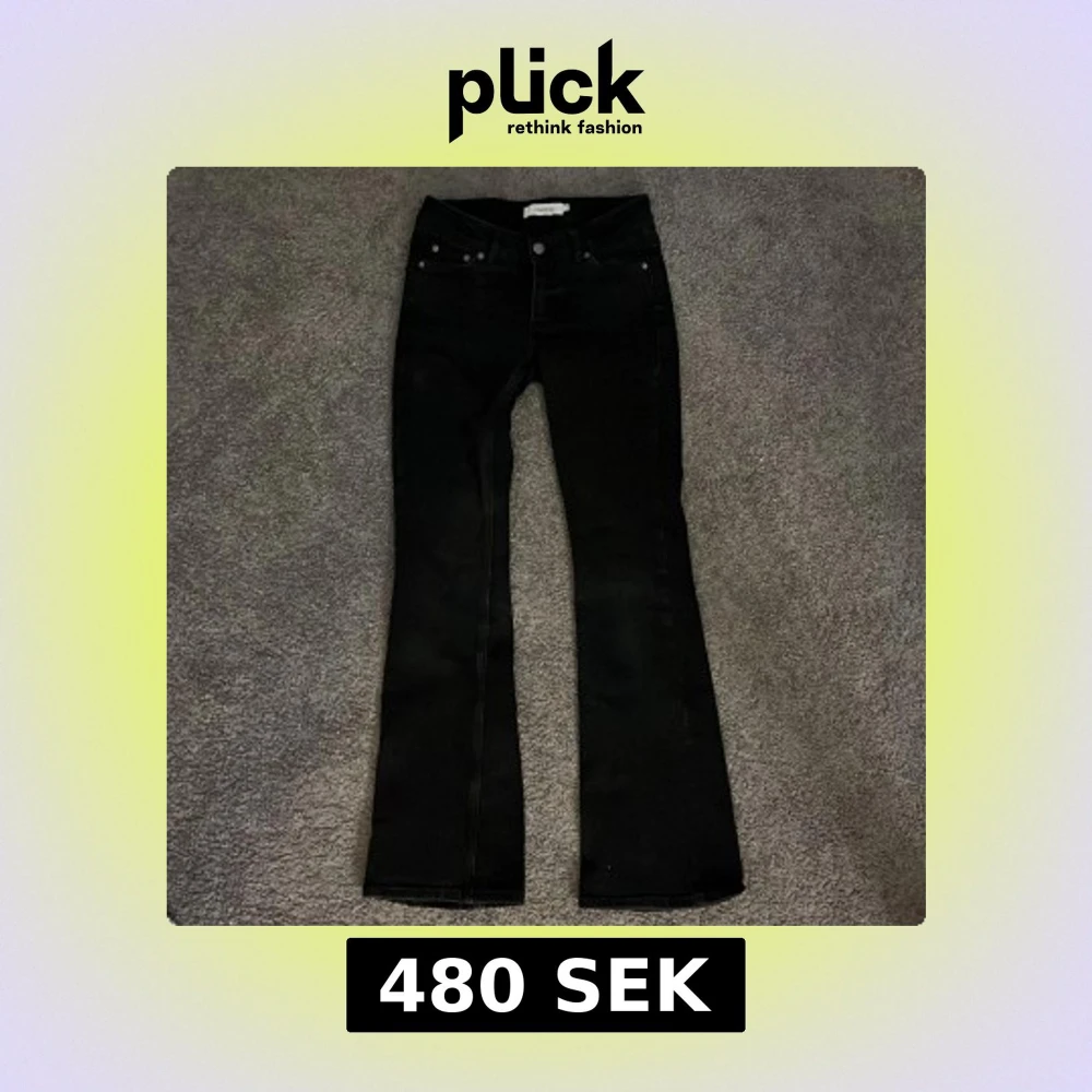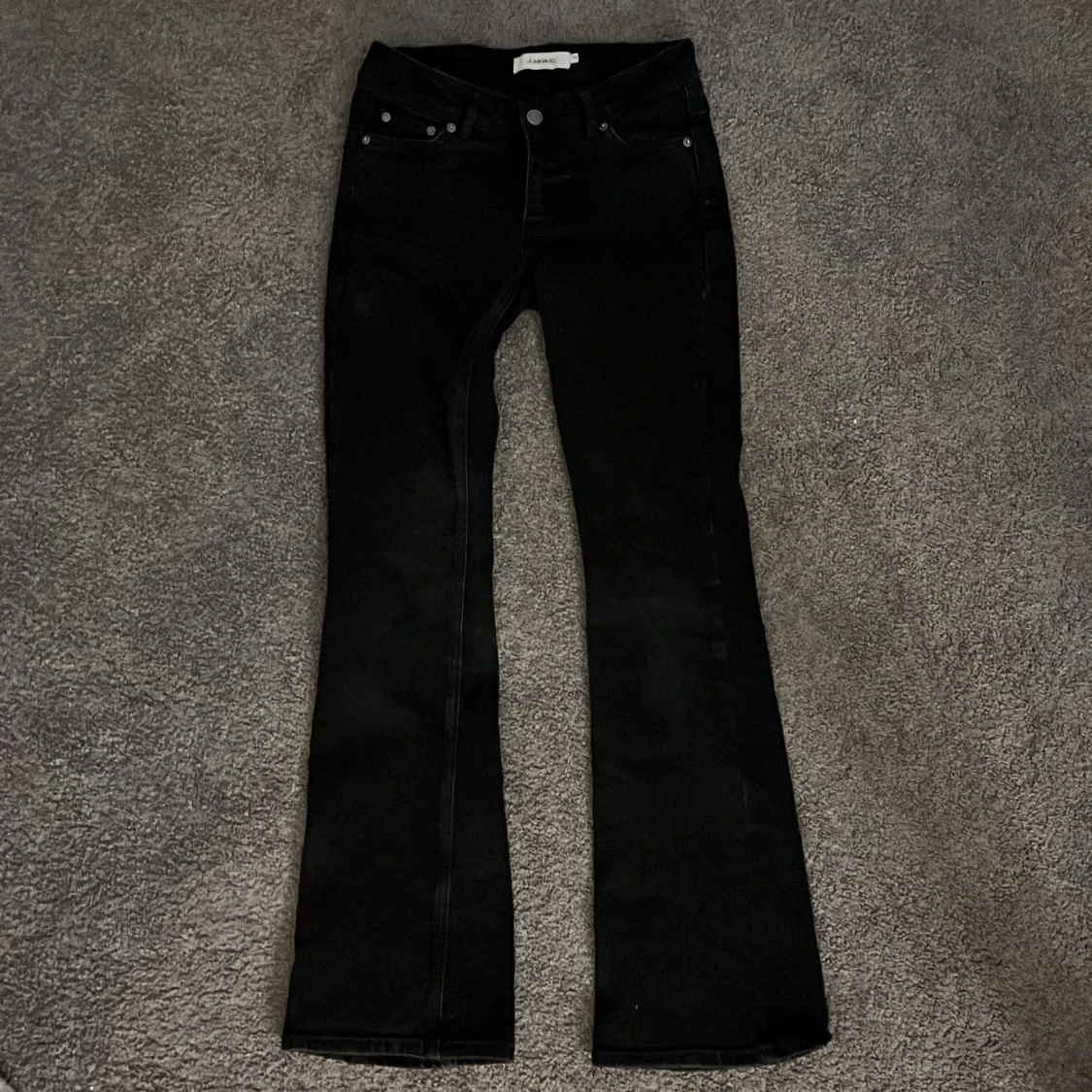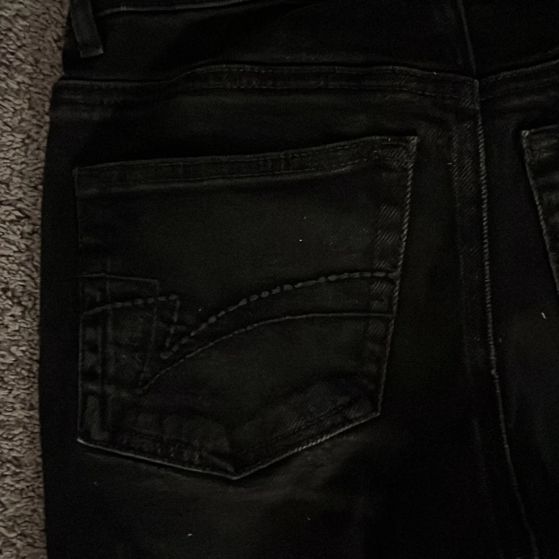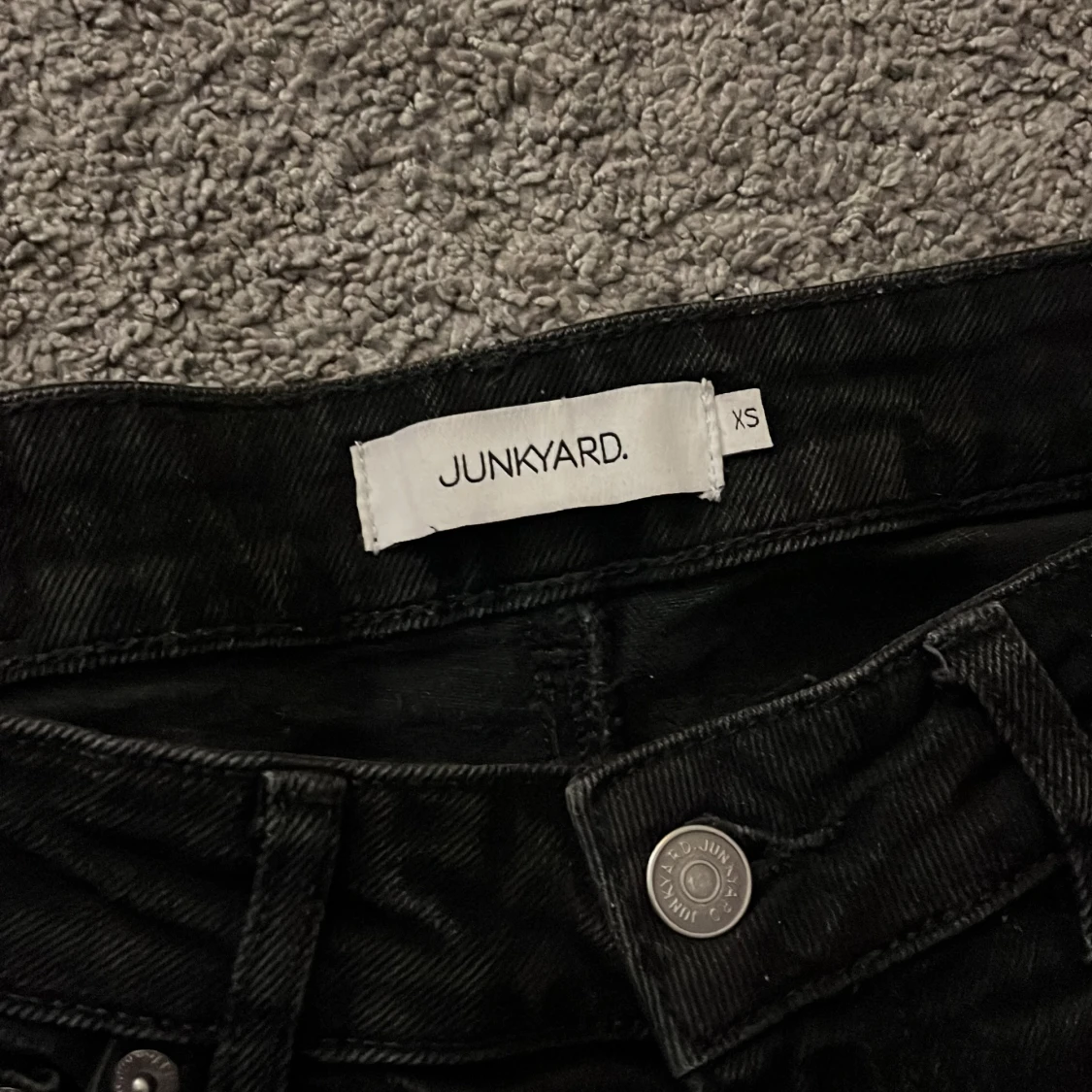 Snygga svarta jeans från Junkyard i bootcut-modell, Lågmidjade!!Jeansen har klassisk femficksdesign, svarta sömmar och subtila detaljer på bakfickan. Perfekta för dig som gillar en stilren look. Använda max 2 gånger i stort sätt helt nya