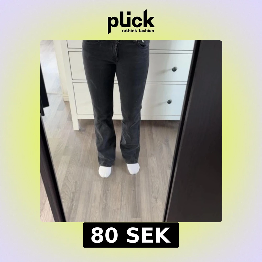 Säljer ett par svarta jeans med bootcut-modell. Låg/midwaist. Lite små fläckar (inget jag försökt få bort). Det är short length på dessa.✨(Jag är 160)