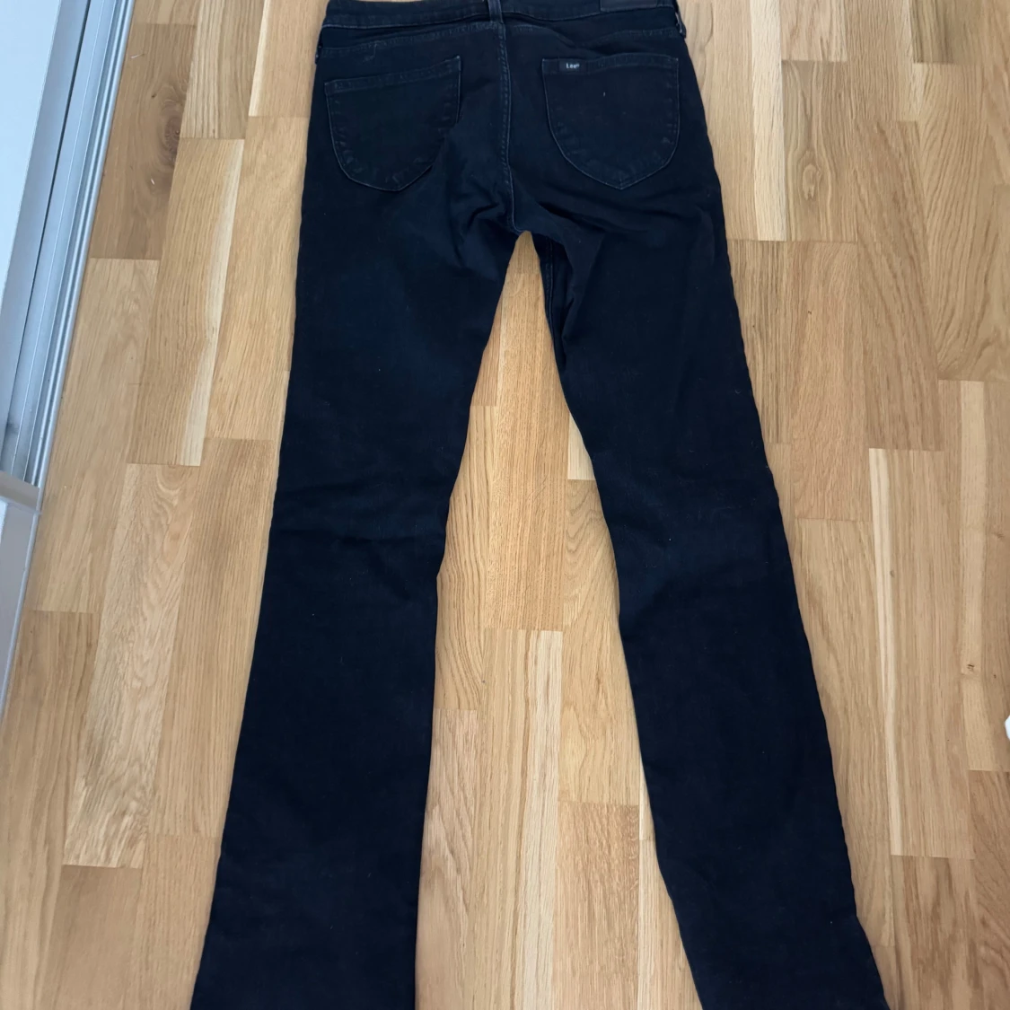 Snygga svarta bootcut jeans från Lee med klassisk femficksdesign och dragkedja. Perfekta för en stilren look.