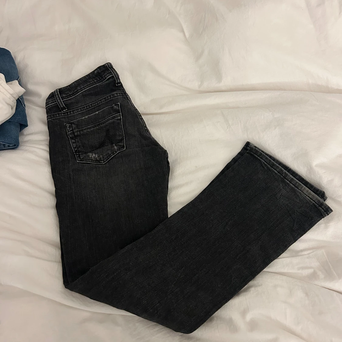 Snygga svarta jeans från LTB med bootcut passform. Jeansen har slitna detaljer på benen och klassisk femficksdesign. Materialet är jeans och färgen är mörkgråsvart med tvättad look. Perfekta för dig som gillar en avslappnad men trendig stil.