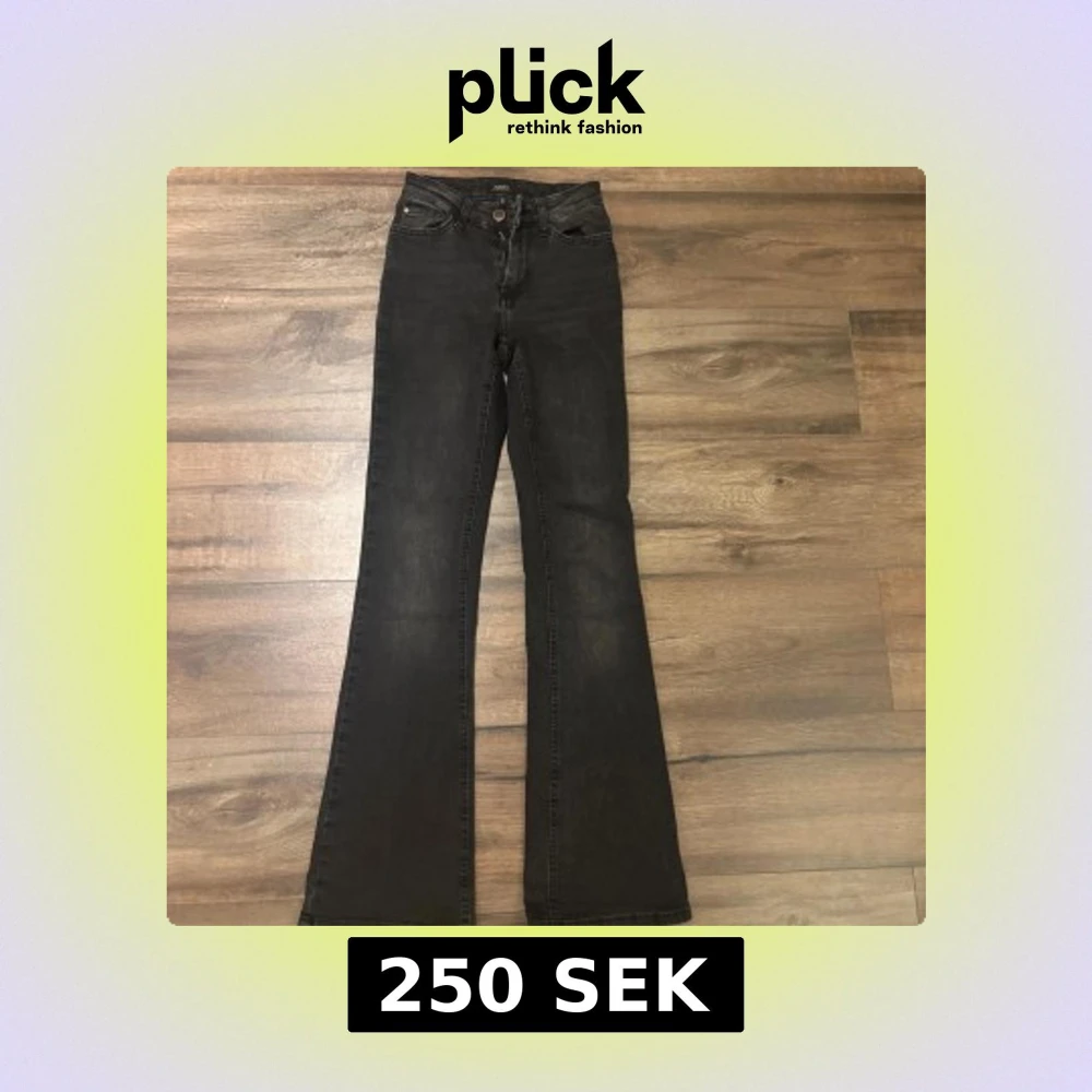 Snygga svartgråa jeans från ONLY i bootcut-modell med medel hög midja. Jeansen har klassisk femficksdesign, dragkedja och knapp framtill. Materialet är stretchigt denim som sitter skönt. Hör av dig vid frågor❣️❣️