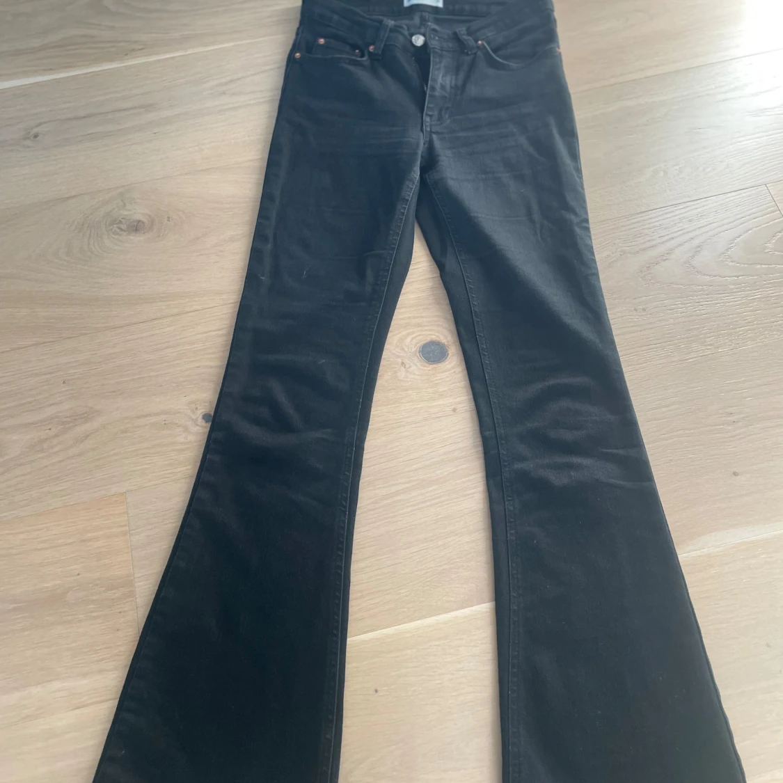 Säljer ett par svarta bootcut jeans från Perfect Jeans i storlek 34 från Gina Tricot. De är lågmidjade och har en snygg passform som sitter tight upptill och blir vidare ner till, använda ett fåtal gånger ❣️