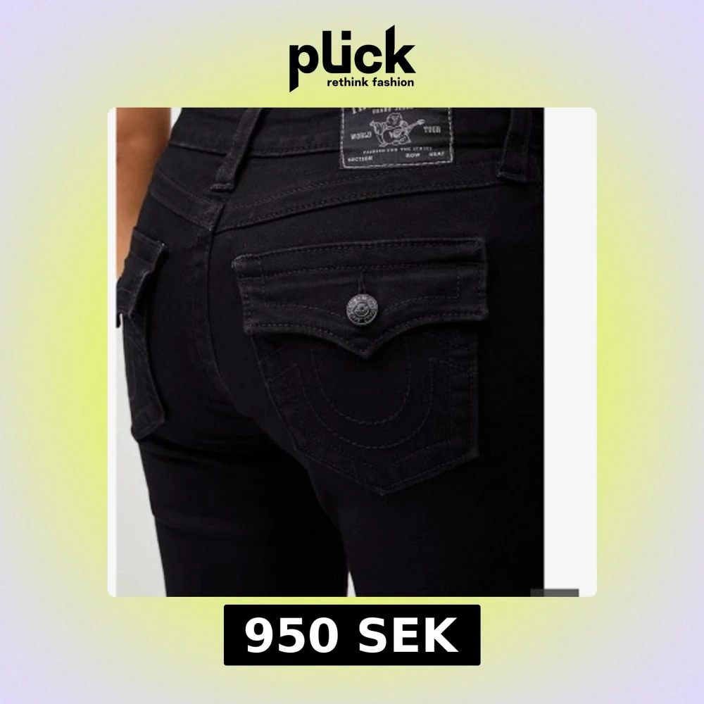Snygga svarta jeans från True Religion med bootcut i modell becca. Jeansen har fickor med lock och knapp bak, samt klassisk jeansdesign. Materialet är stretchigt denim som sitter bekvämt och framhäver siluetten. Köpt för 1300kr och säljs nu för 900kr